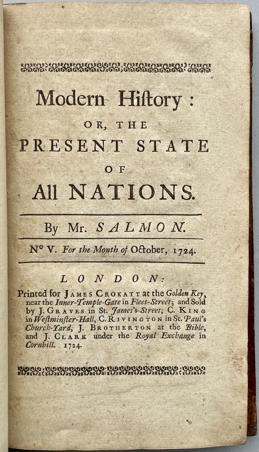 Modern History: OR, THE PRESENT STATE OF ALL NATIONS.By Mr. SALMON. No V. For the Month of October