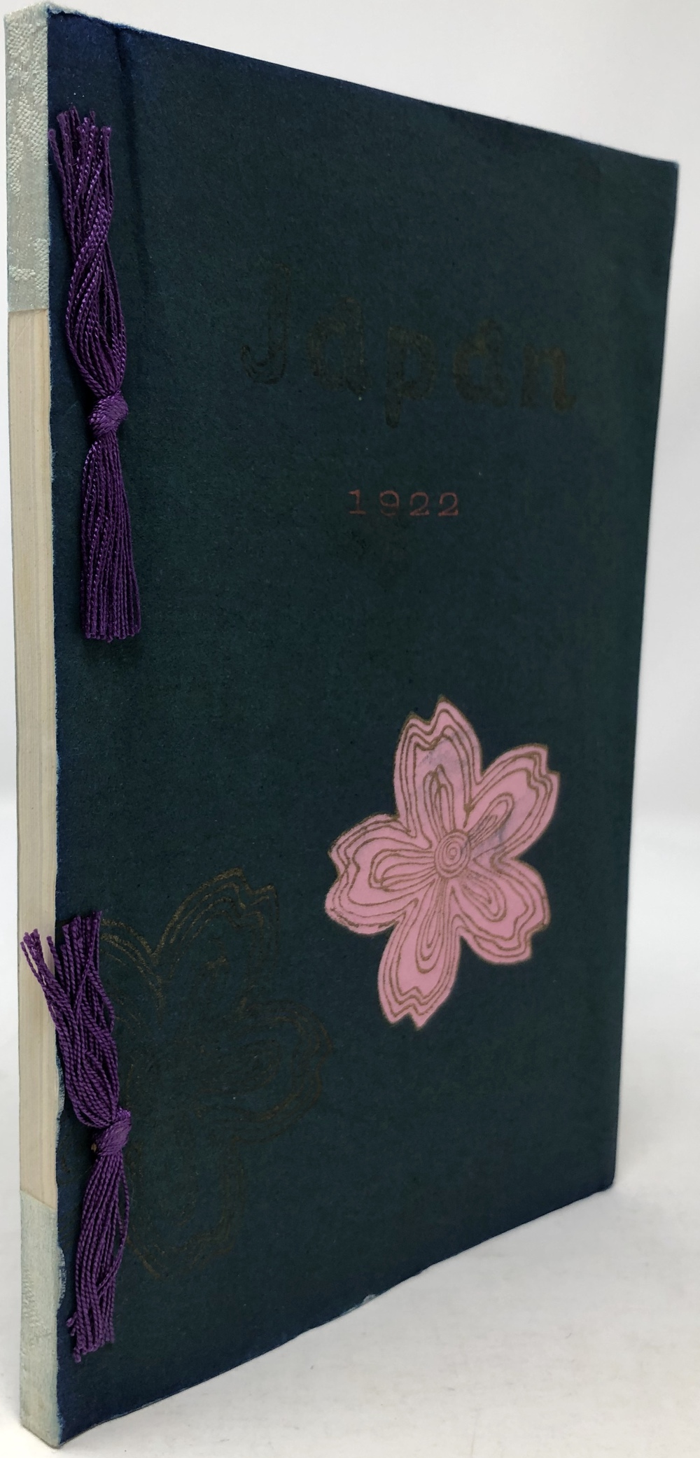Original decorative traditional Japanese paper covers bound in Japanese style, silk tied with a special dust jacket for Passengers of S. S. "Samaria" Round-the-World Crouise 1923.