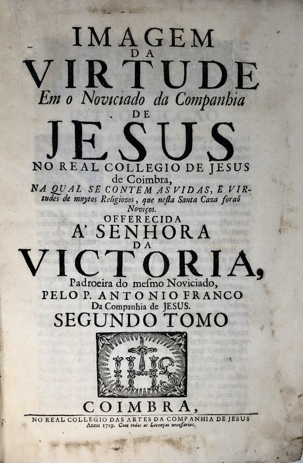 IMAGEM DA VIRTUDE EM O NOVICIADO DA COMPANHIA DE JESUS No REAL COLLEGIO DE JESUS de Coimbra EM PORTUGAL...