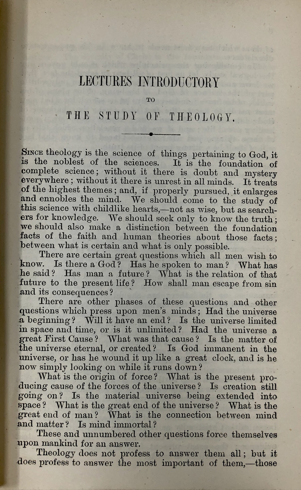 LECTURES INTRODUCTORY TO THE STUDY OF THEOLOGY.