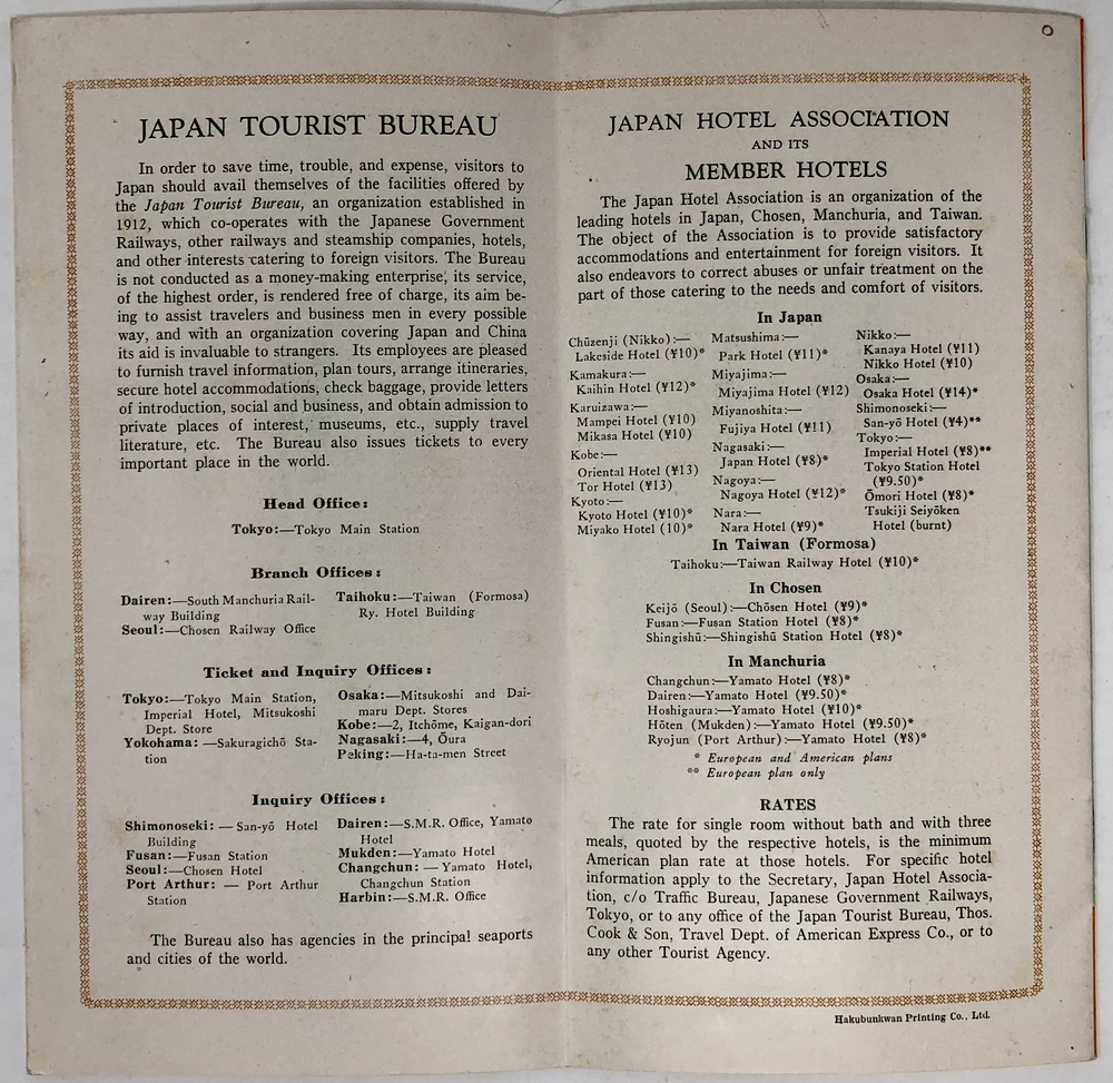 Japanese Government Railways / Japan Tourist Bureau / Japan Hotel Association.