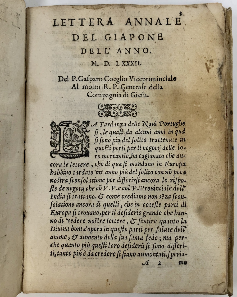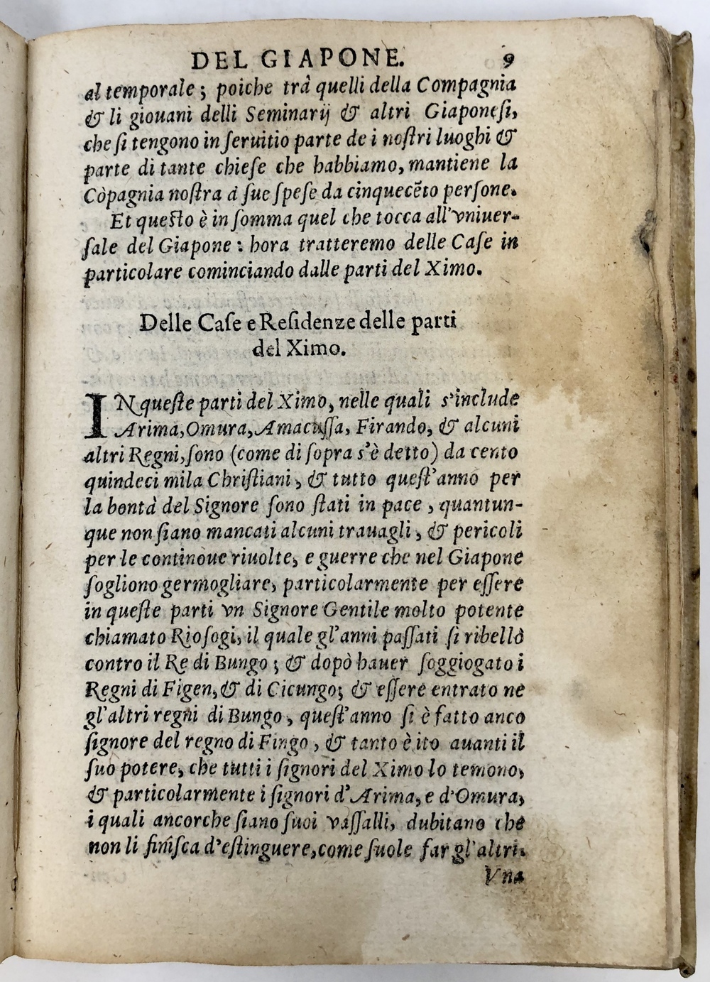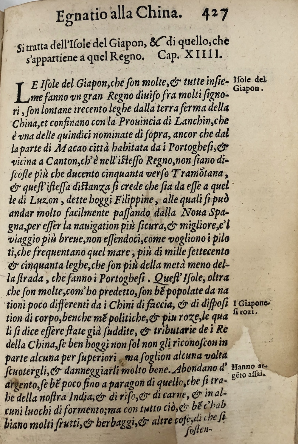 CHINA; Title, 35 leaves, pp.[1], 2-462, 1 leaf [bound with] GIAPPONE: pp.[1(Title), 2], 3-99, 110[i.e.100], 101-112, LACKING 1 LEAF (G8, i.e. pp.113,114)115-118,