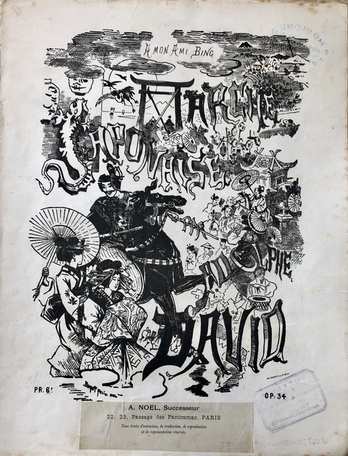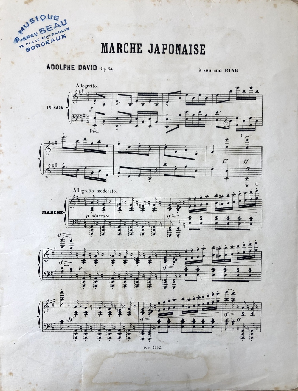 タイトル裏面(楽譜ページ冒頭)上部余白に当時の販売店の押印あり。