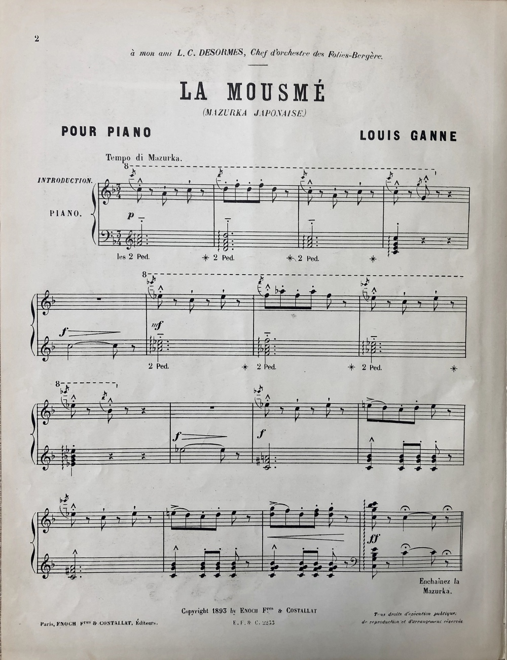 à mon ami L. C. DESORMES, chef d'orchestre des Folies-Bergére. LA MOUSMÉ (MAZURUKA JAPONAIE). POUR PIANO.