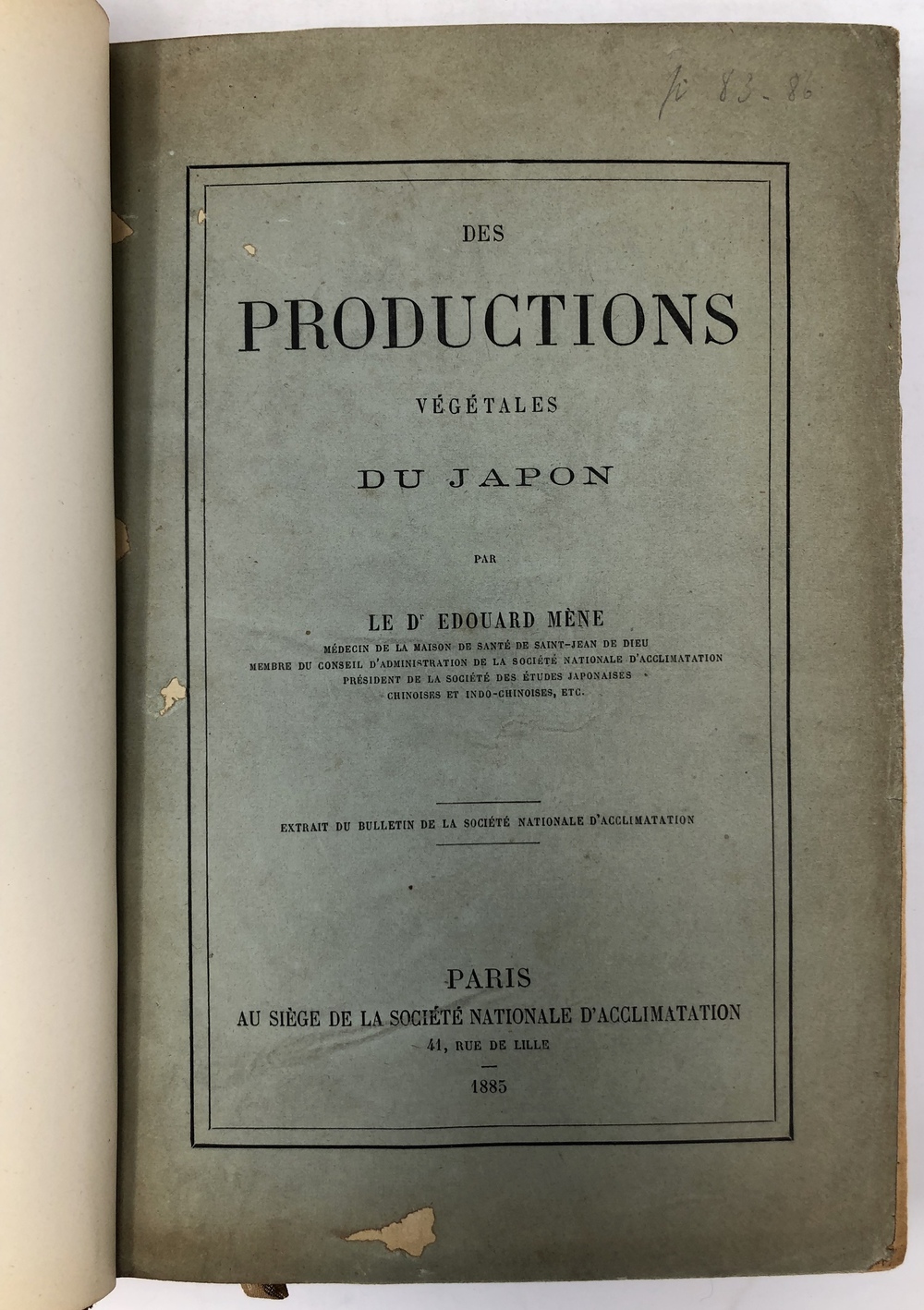 著者直筆献呈本 1885年 パリ刊