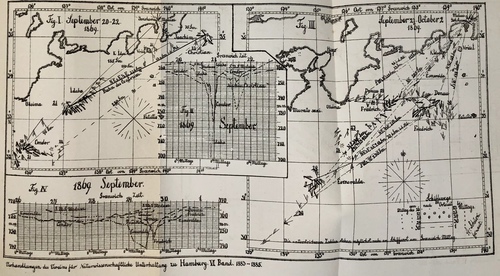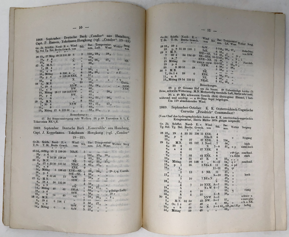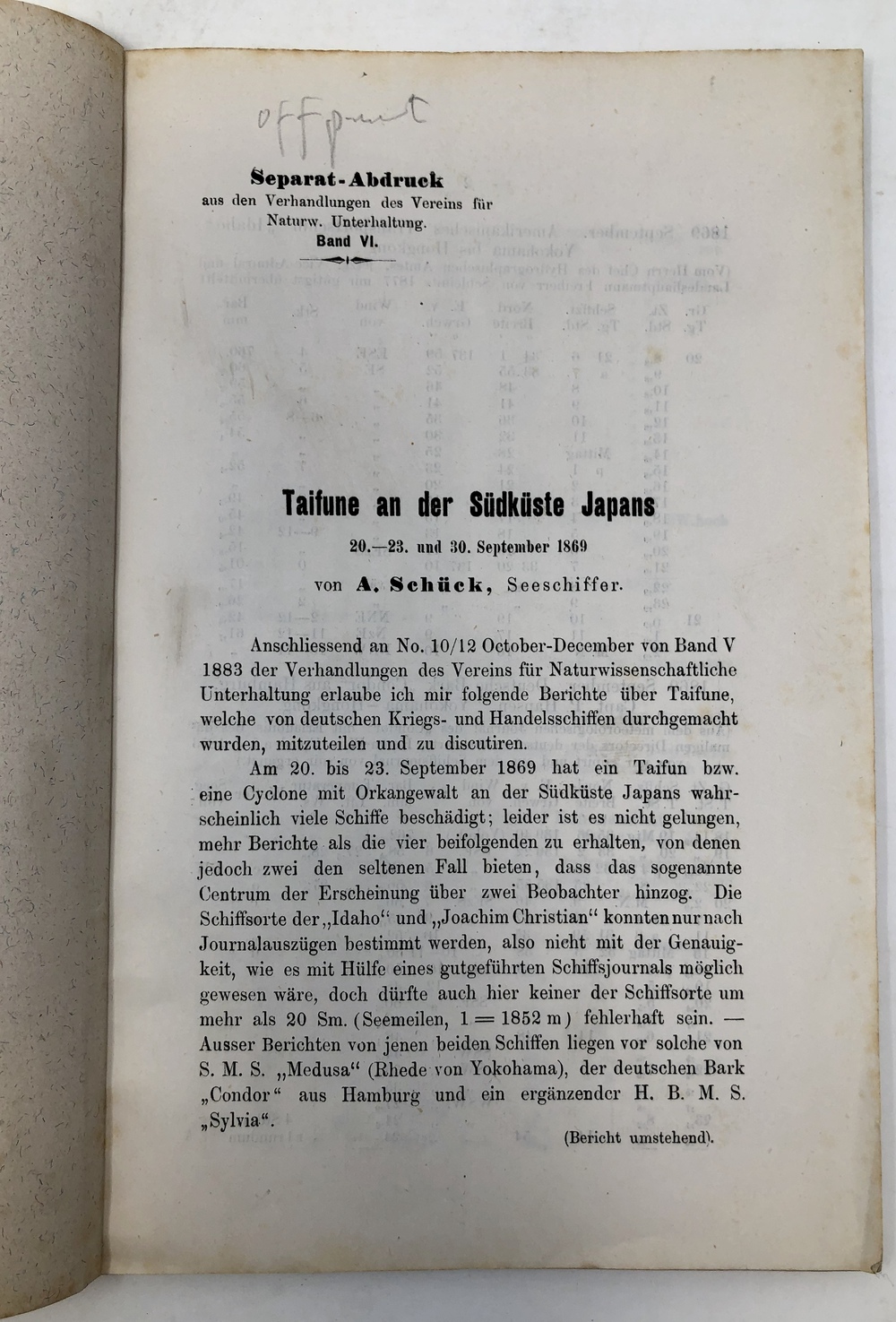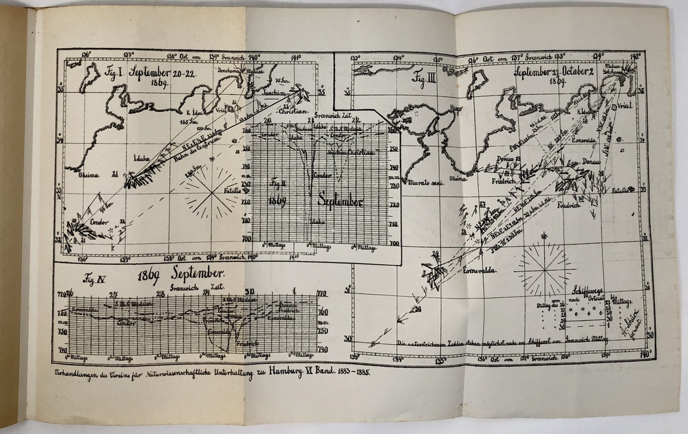 Taifune an der Südküste Japans 20.-23. und 30. September 1869. (Separat-Abdruck aus den Verhandlungen des Vereins für Naturw(issenschaft). Unterhaltung. Band VI.)