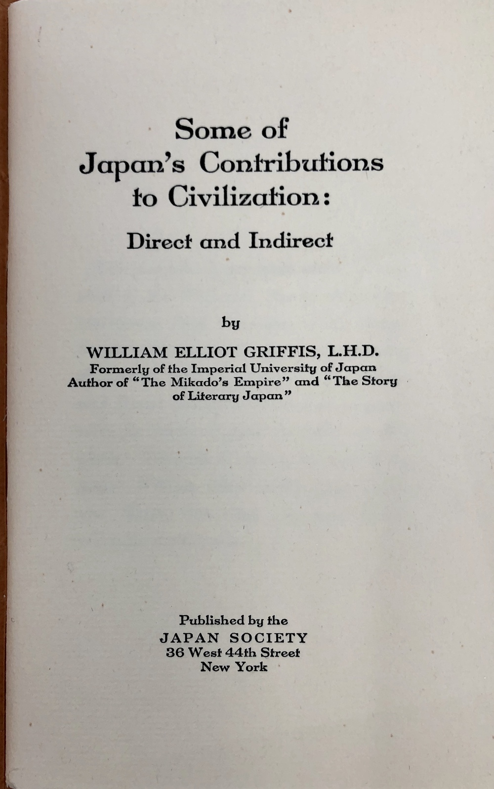 Some of Japan's Contributions to Civilization: Direct and Indirect.