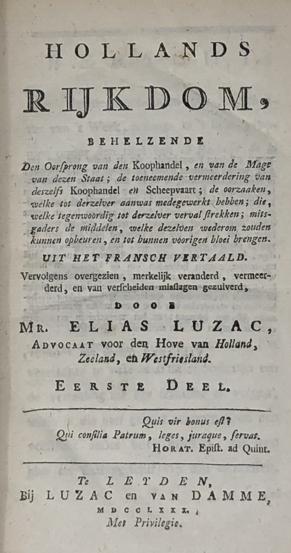 HOLLANDS RIJKDOM, BEHELZENDE Den Oorsprong van den Koophandel, en vande Mage van dezen Staat;...