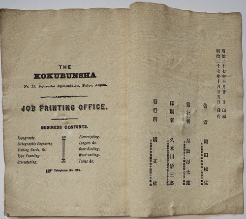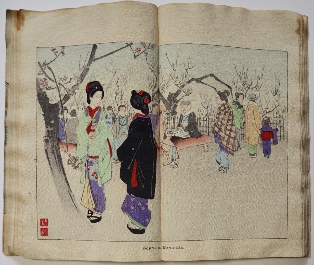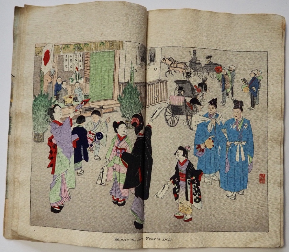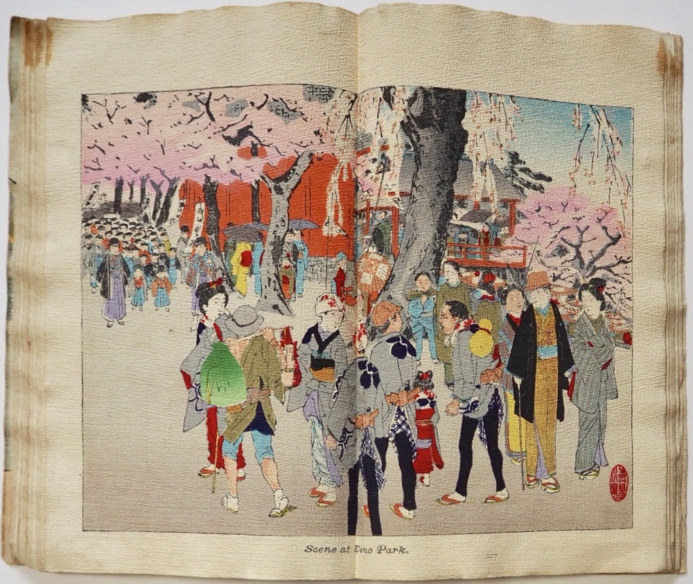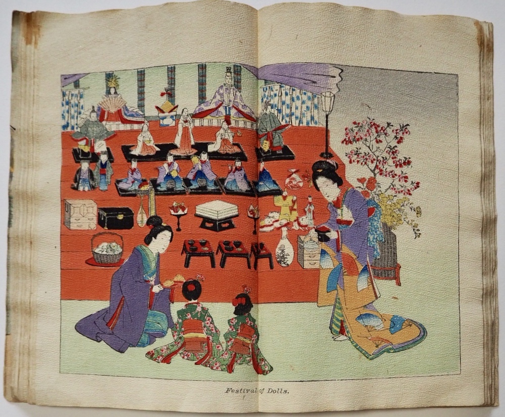 Vol.1: Title, pp.[1], 2-18, printed in folded crape paper, double pages colored plates: [8], Vol.2: Title, pp.19-37, printed in folded crape paper, double pages colored plates:[7],