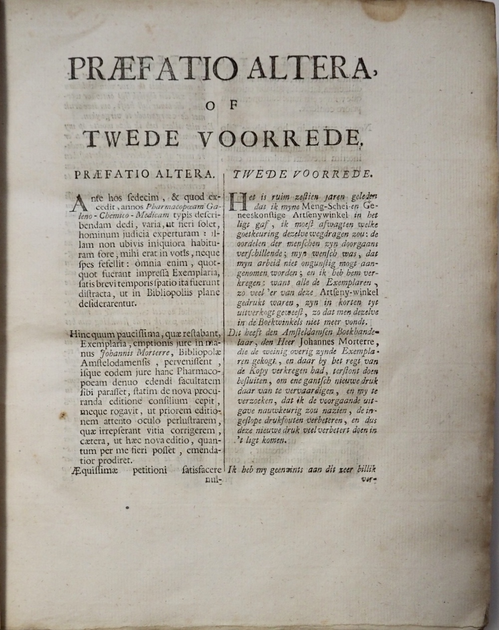 GUALTHERI VAN LIS, M.D. PHARMACOPOEA GALENO- CHEMICO- MEDICA Probatissimis Auctoribus, ratione & experientia fundata. / MENG- SHEI- EN GNEESKONSTIGE ARTSENY-WINKEL; Op de beste Schryvers, de rede en ondervinding gebouwt;....