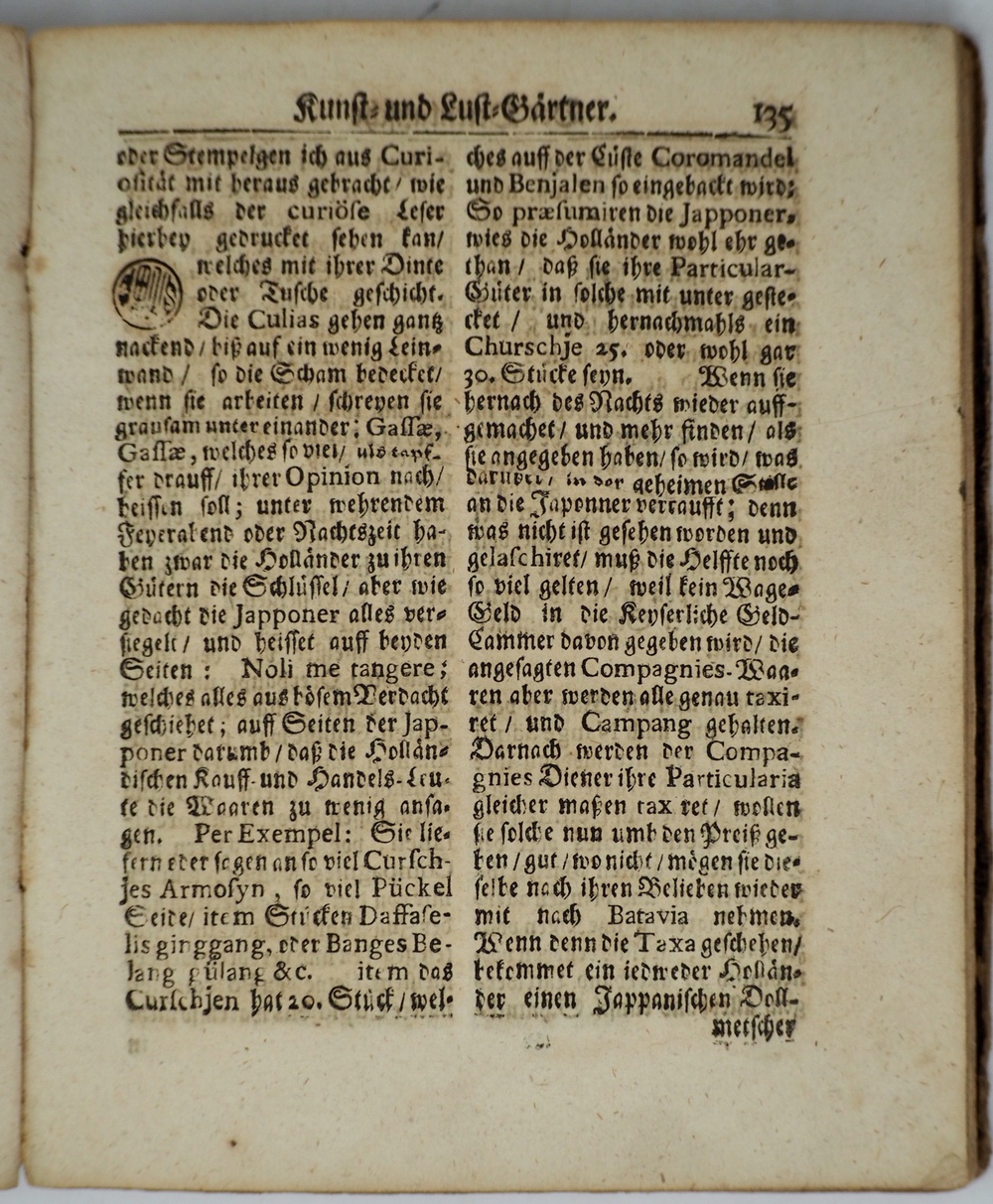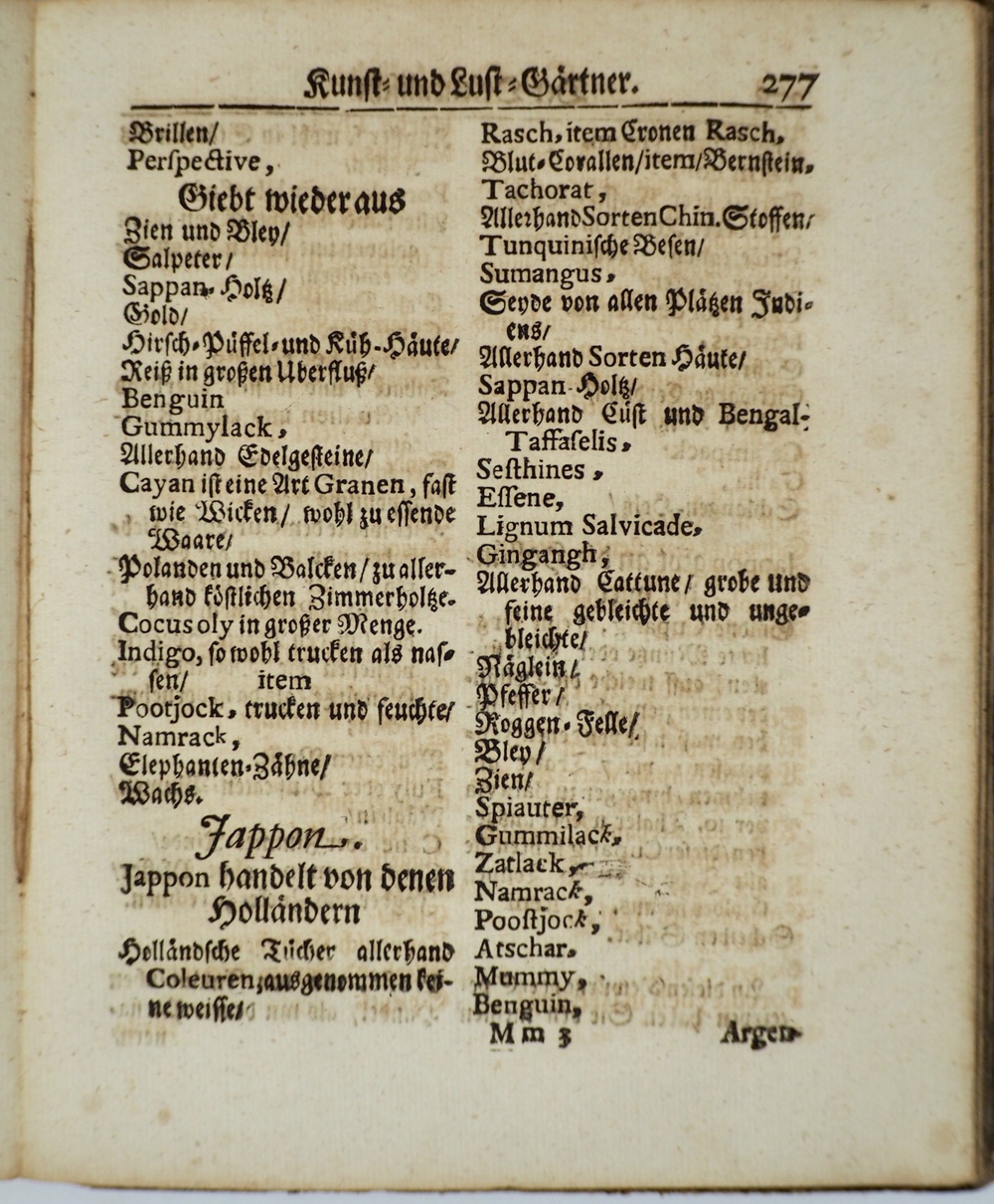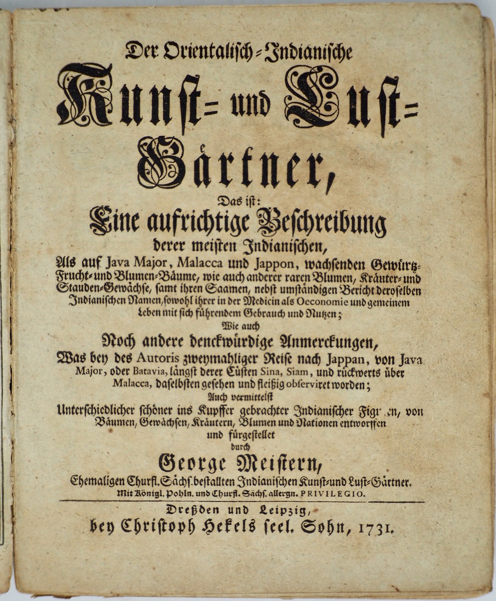Der Orientalisch=Indianische Kunst= und Lust=Gärtner, Das ist: Eine aufrichtige Beschreibung derer meisten Indianischen, als auf Java Major, Malacca und Jappon,...