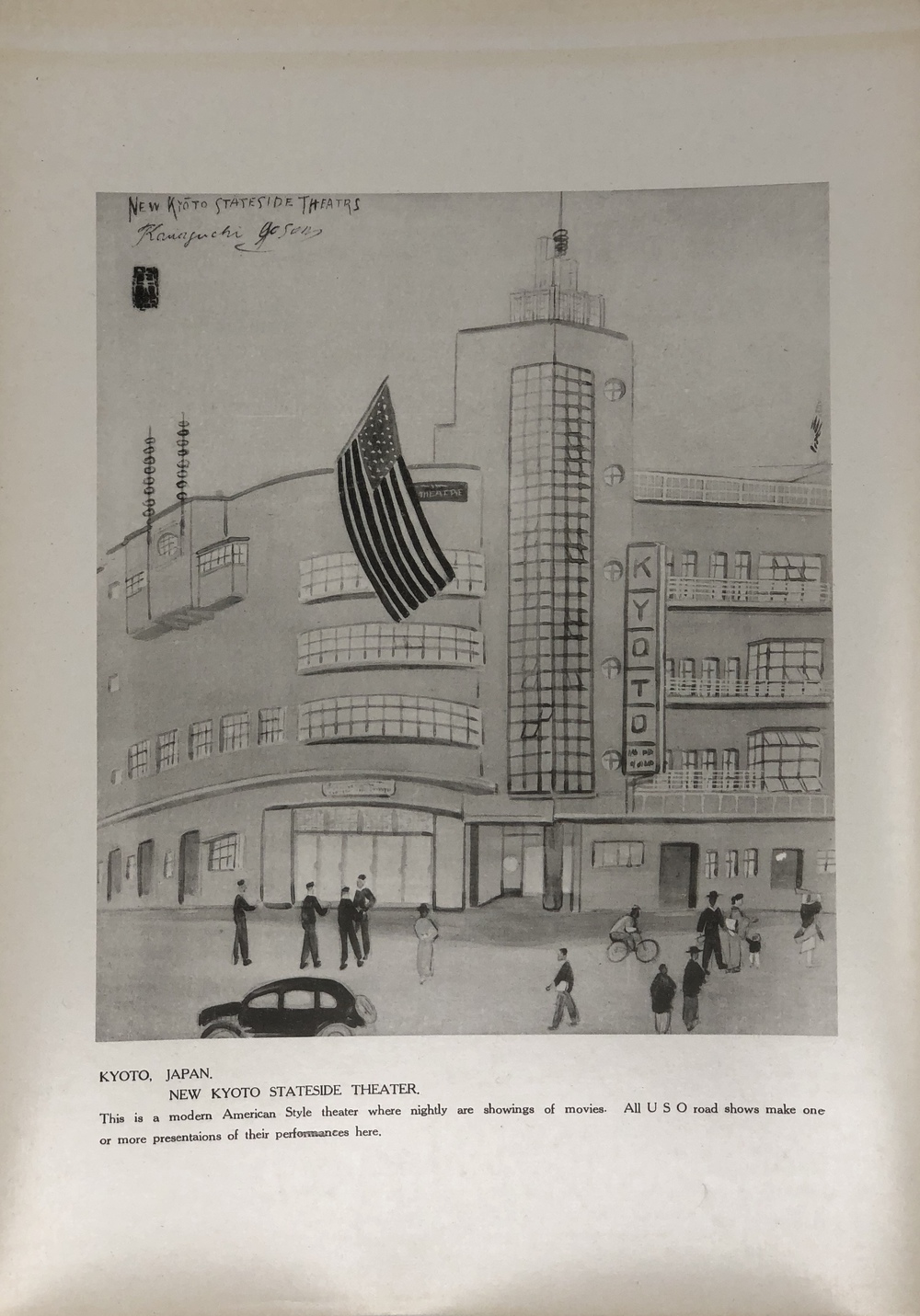 これらの作品で描かれる京都は、占領軍にとって重要、あるいは魅力的に感じられた場所と思われますが、「弥栄劇場(現弥栄会館)」「ステイトサイド・シアター(京都宝塚会館)」「第8軍レクリエーション・センター(旧京都電燈本社ビル(関西電力京都支店ビル) 」「丸物京都本店(現プラッツ近鉄)」ユー・オールド・ドーナツ・ショップ(藤井大丸)」など、現在の京都でもその痕跡を確認することができる娯楽施設が含まれていることも、大変関心を惹く点です。
