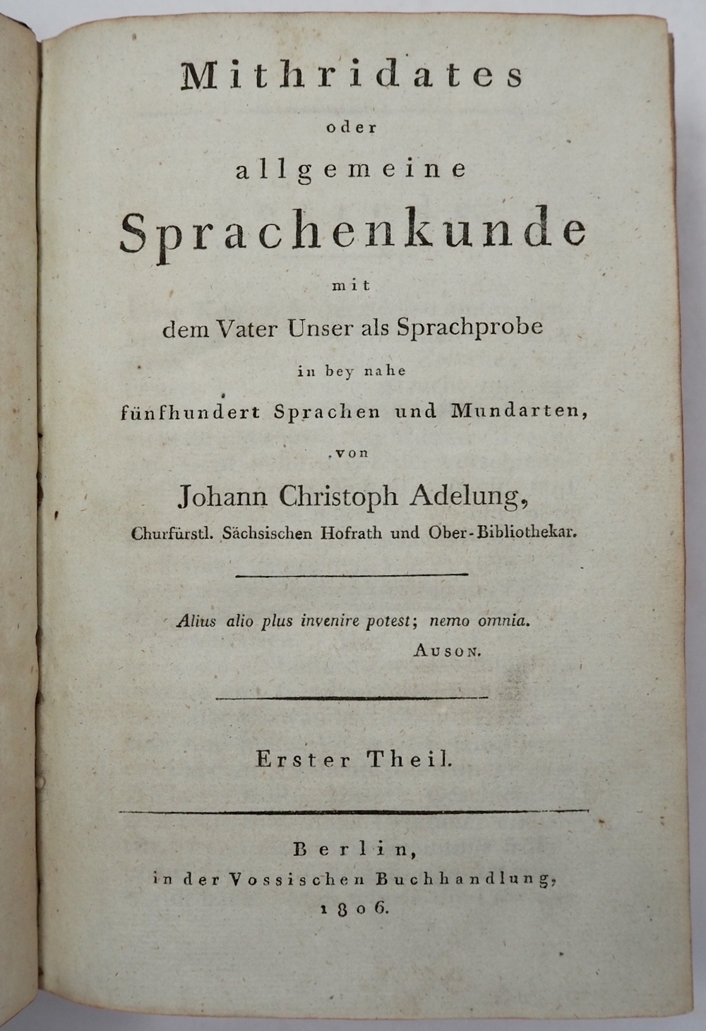 Mithridates oder allgemeine Sprachenkunde mit dem Vater Unser als sprachprobe in bey nahe fünfhunder Sprachen und Mundarten,...