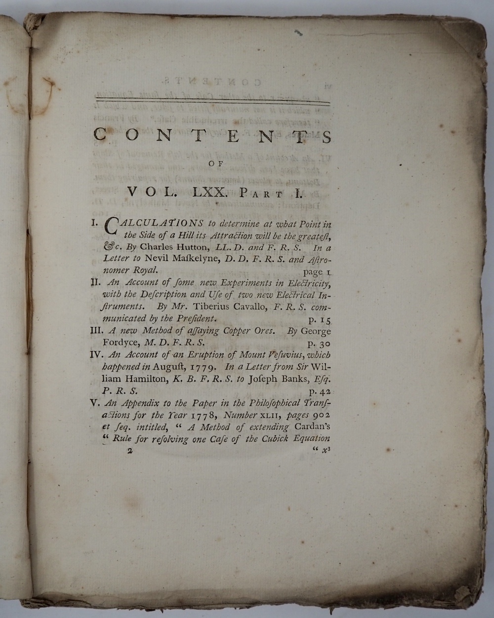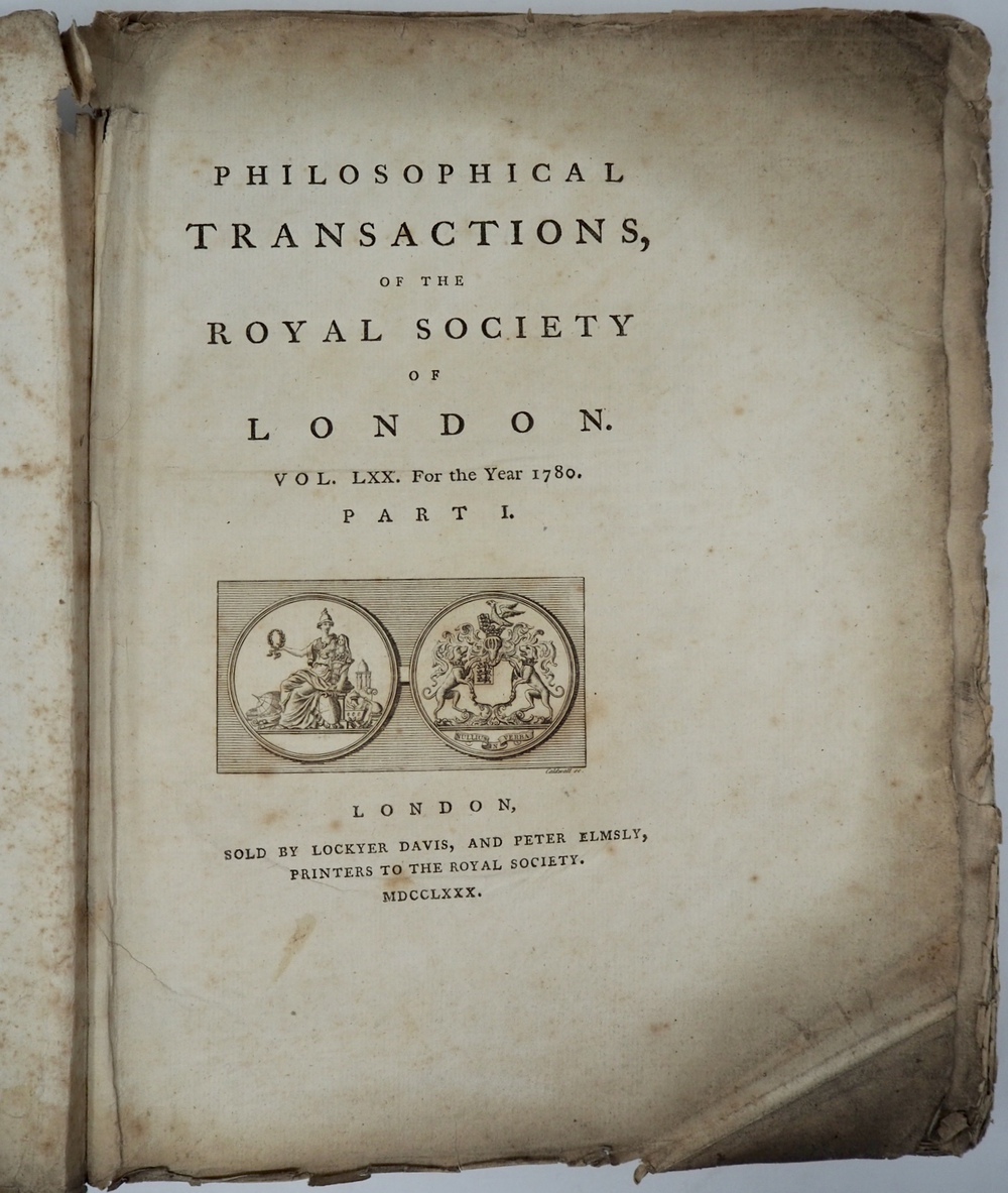 ROYAL SOCIETY OF LONDON. Vol. LXX. For the Year 1780. PART I. London,