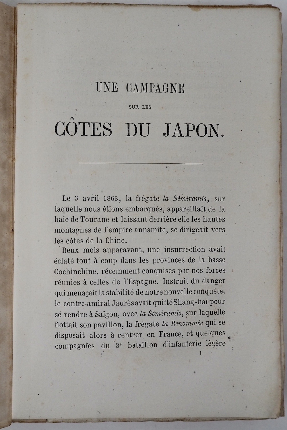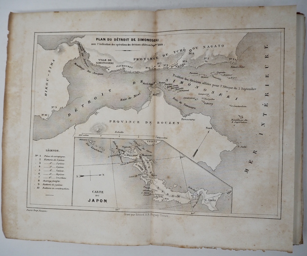 Half Title., Title., a double pages map( PLAN DU DÉTROIT DE SIMONOSEKI), pp. [1], 2-285, 1 leaf, pp.[1], 2-4,