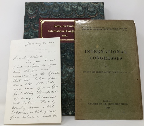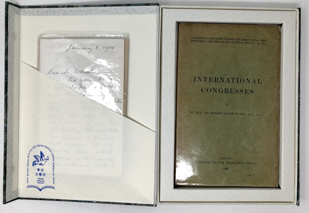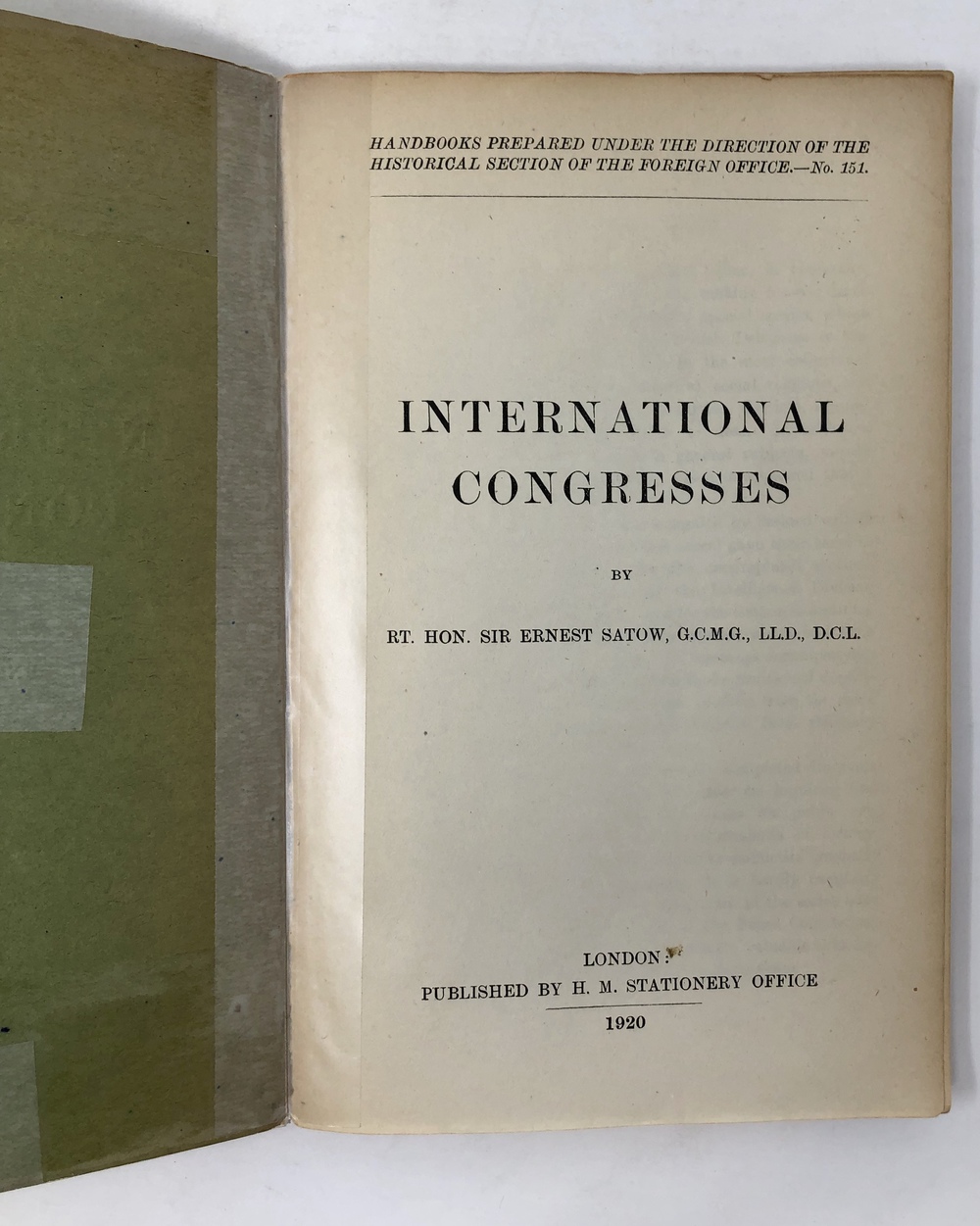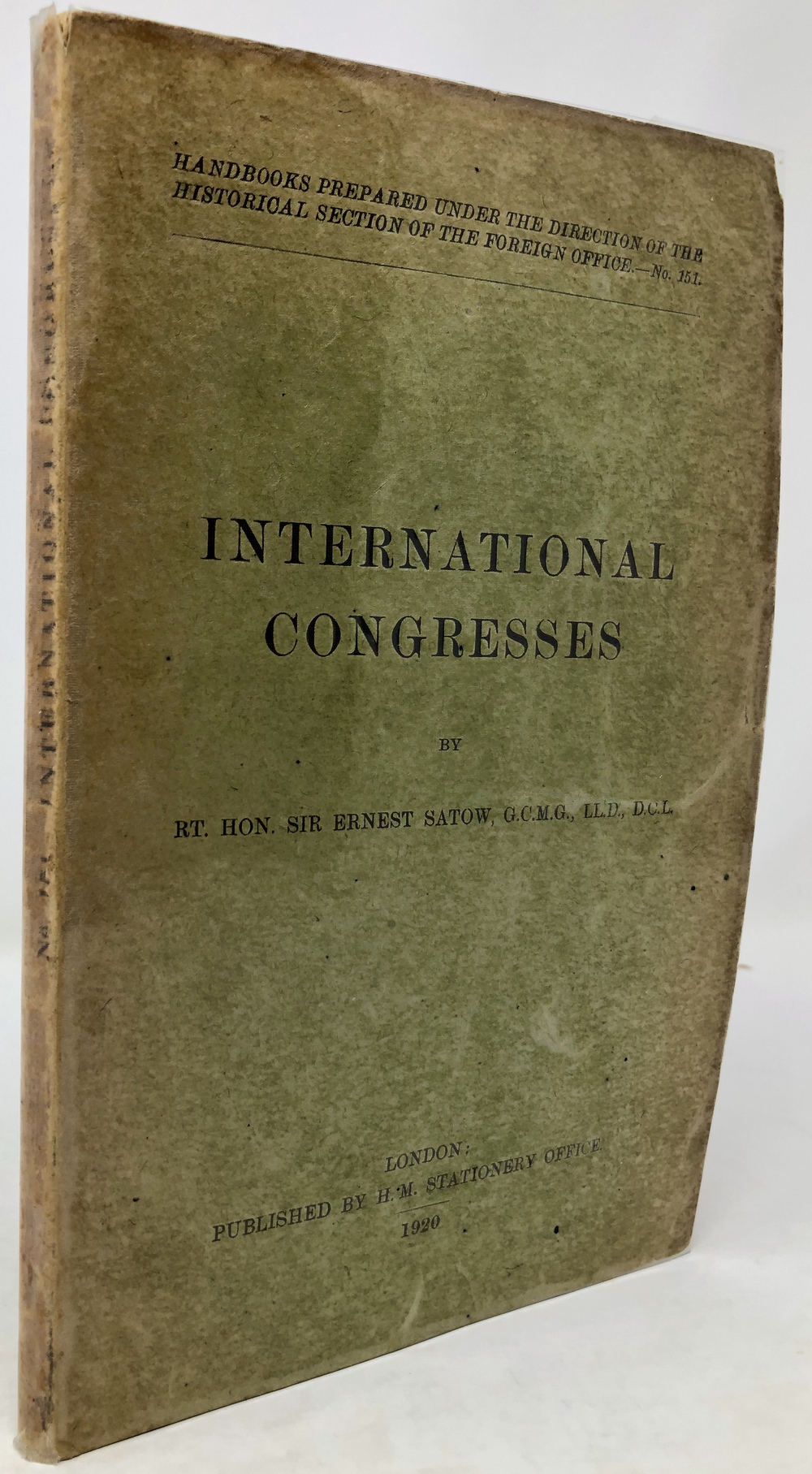 INTERNATIONAL CONGRESSES. (HANDBOOKS PREPARED UNDER THE DIRECTION OF THE HISTORICAL SECTION OF THE FOREIGN OFFICE. No.151) [together with] Autograph Letter to Wheeler Signed by Satow dated on January 8, 1908.