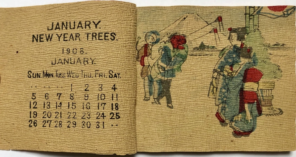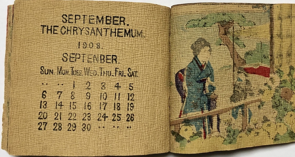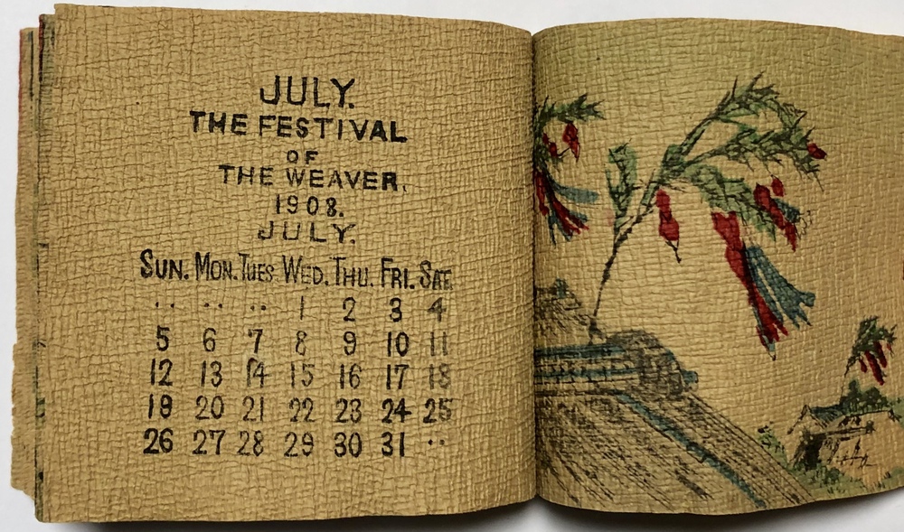 Crepe paper book, 13 folded crepe papers including the covers (i.e. 26 pages),