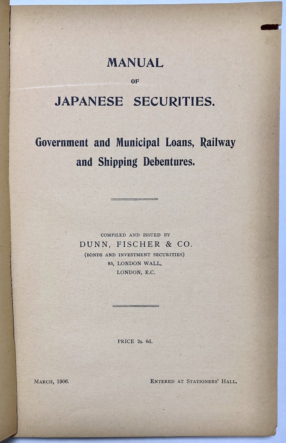 MANUAL OF JAPANESE SECURITIES. Government and Municipal Loans, Railway and Shipping Debentures.