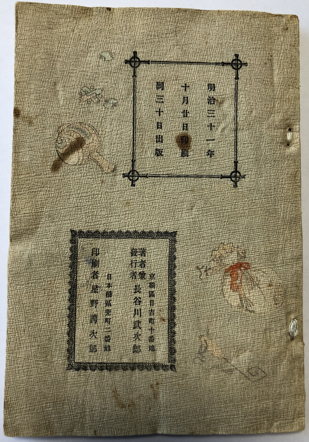 明治三十一年十月廿日印刷、同年三十日出版.