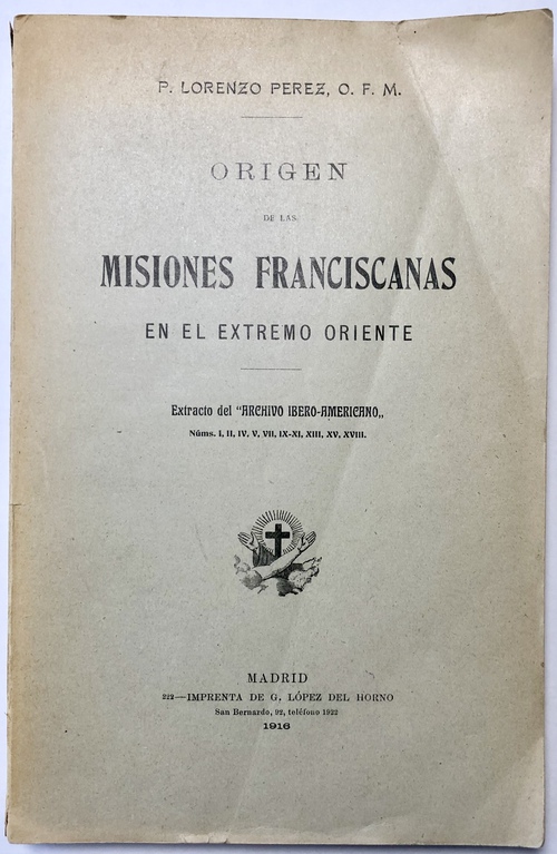 ORIGEN DE LAS MISIONES FRANCISCANAS EN EL EXTREMO ORIENTE (Extracto del “ARCHIVO IBERO-AMERICHNO” Núms. I, II, IV, V, VII, IX-XI, XIII, XV, XVIII.).
