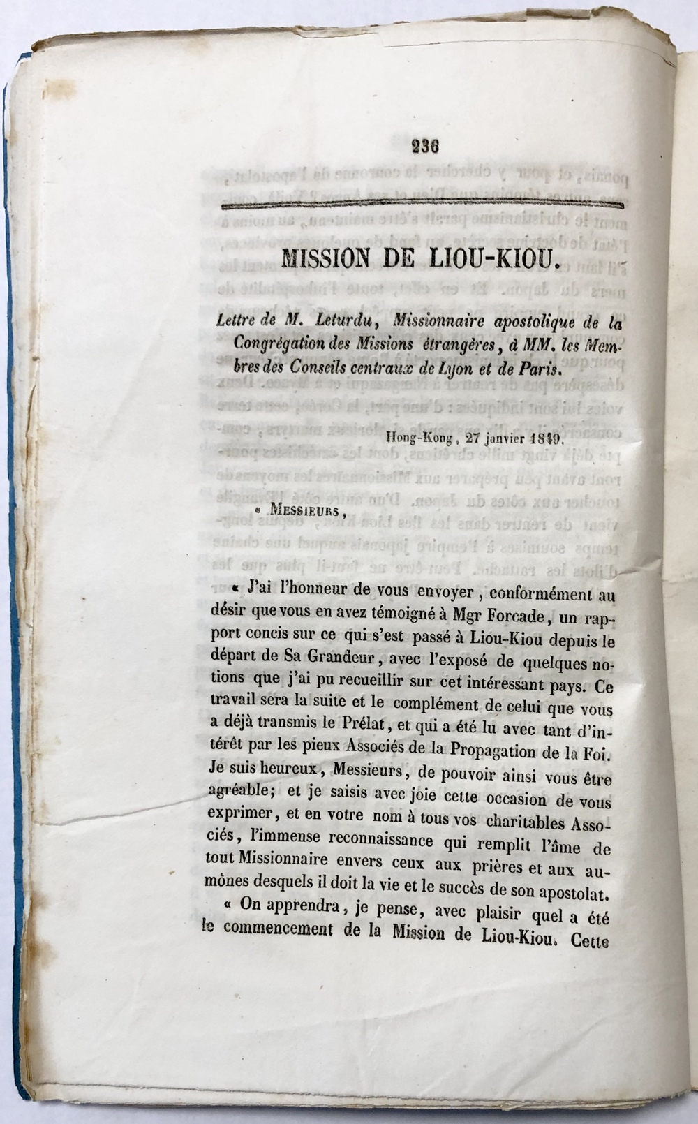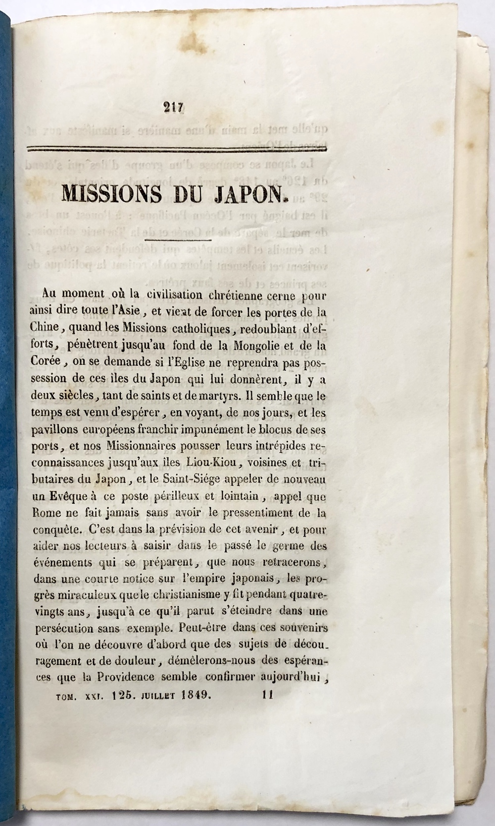MISSIONS DU JAPON / MISSION DE LIOU-KIOU / MISSIONS DE LA CORÉE…etc.IN ANNALES DE LA PROPAGATION DE LAFOI. JUILLET 1849. No.125.