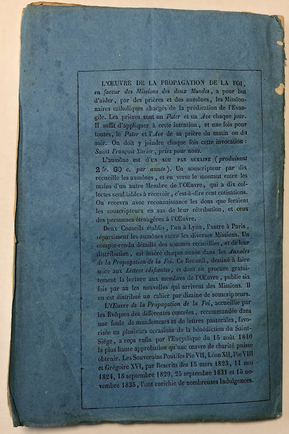 雑誌『信仰普及協会年報』第21巻125号から 1849年 リヨン / パリ刊