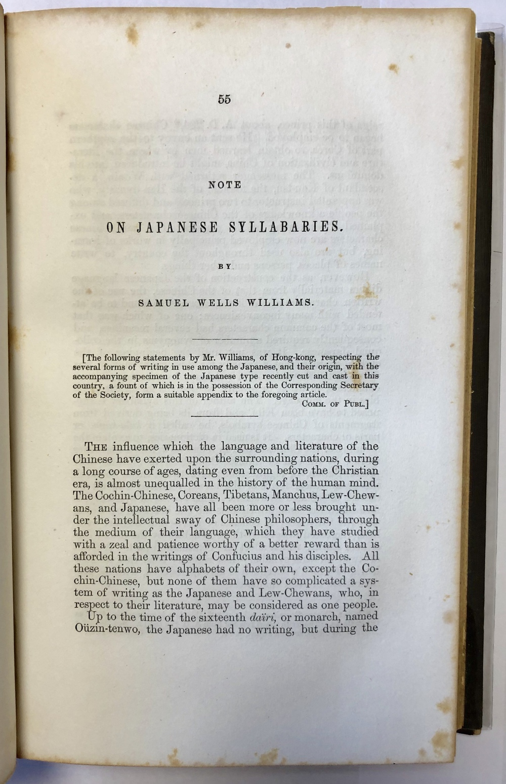 Account of a Japanese romance, with an Introduction, / Note on Japanese syllabaries…etc. IN JOURNAL OF THE AMERICAN ORIENTAL SOCIETY. SECOND VOLUME.