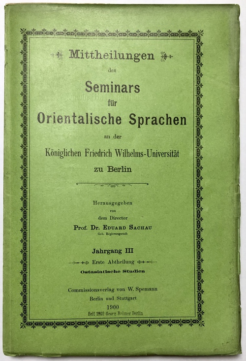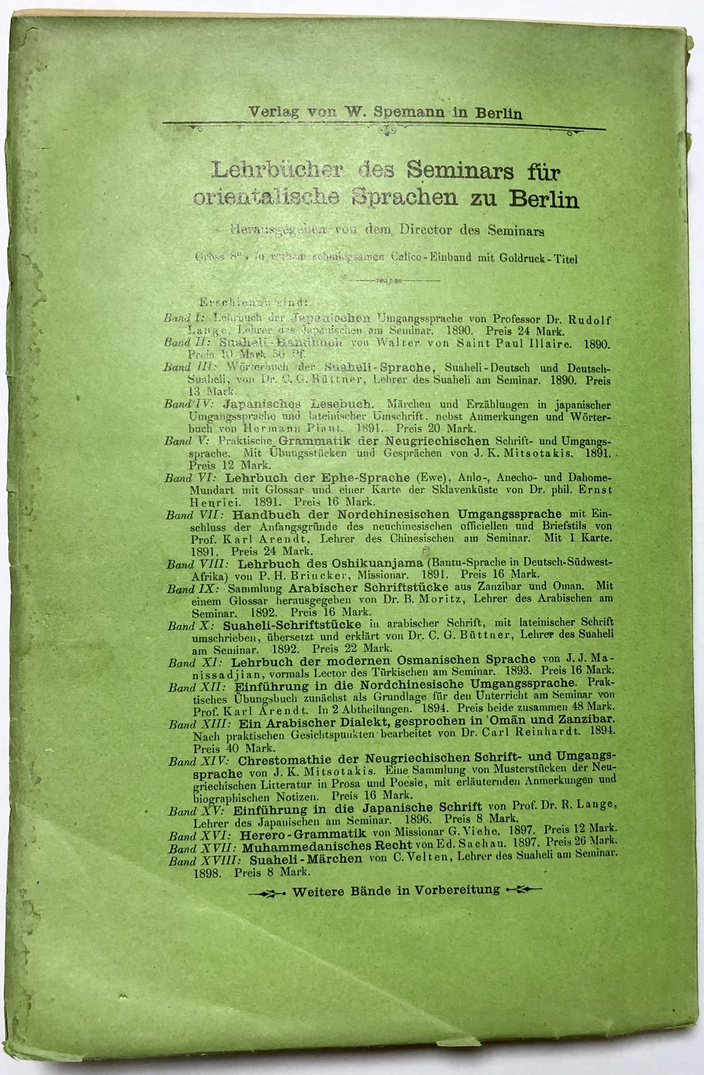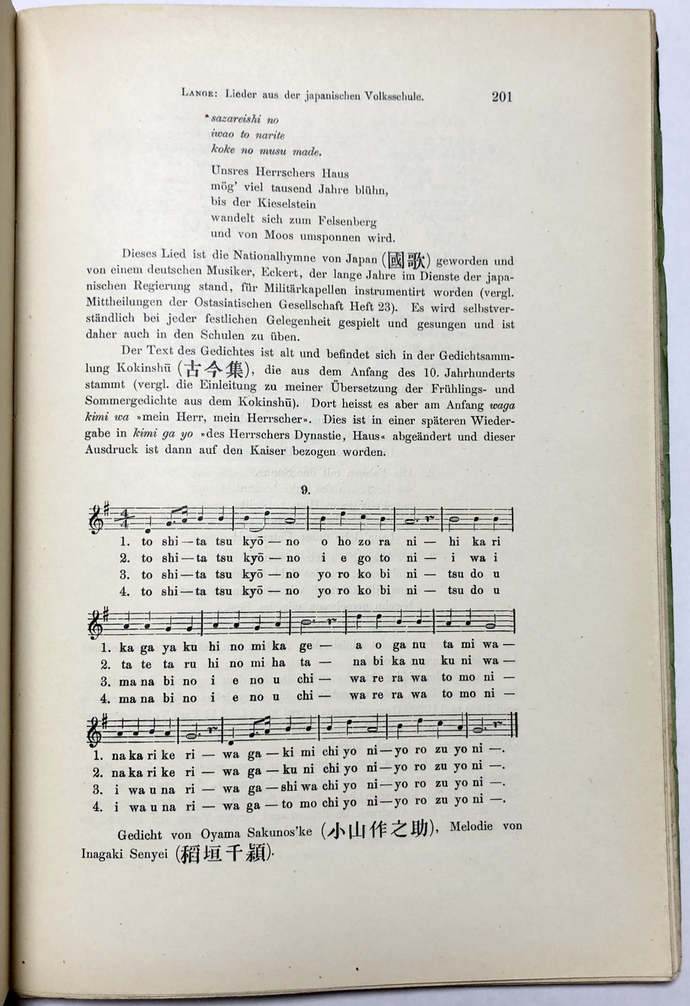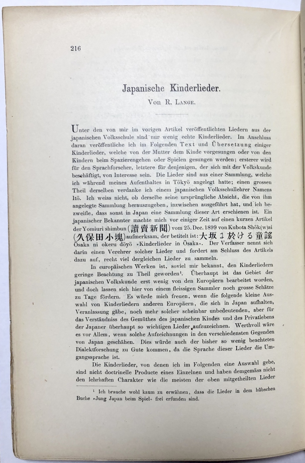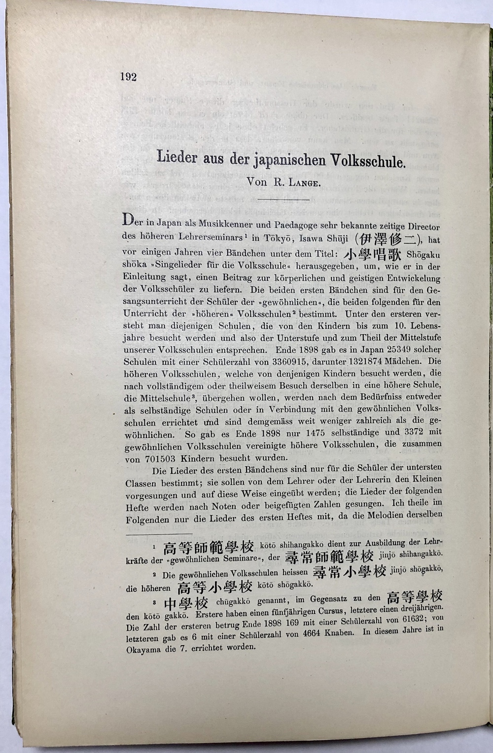 Lieder aus der japanischen Volksschule / Japanische Kinderlieder. IN Mittheilungen des Seminars für Orientalische Sprachen an der Königlichen Friedrich Wilhelms-Universität zu Berlin. Jahrgang III, Erste Abteilung.