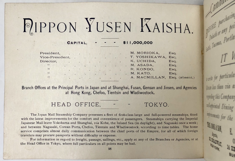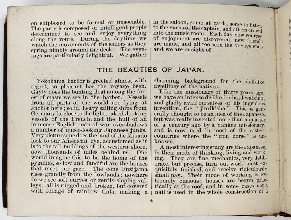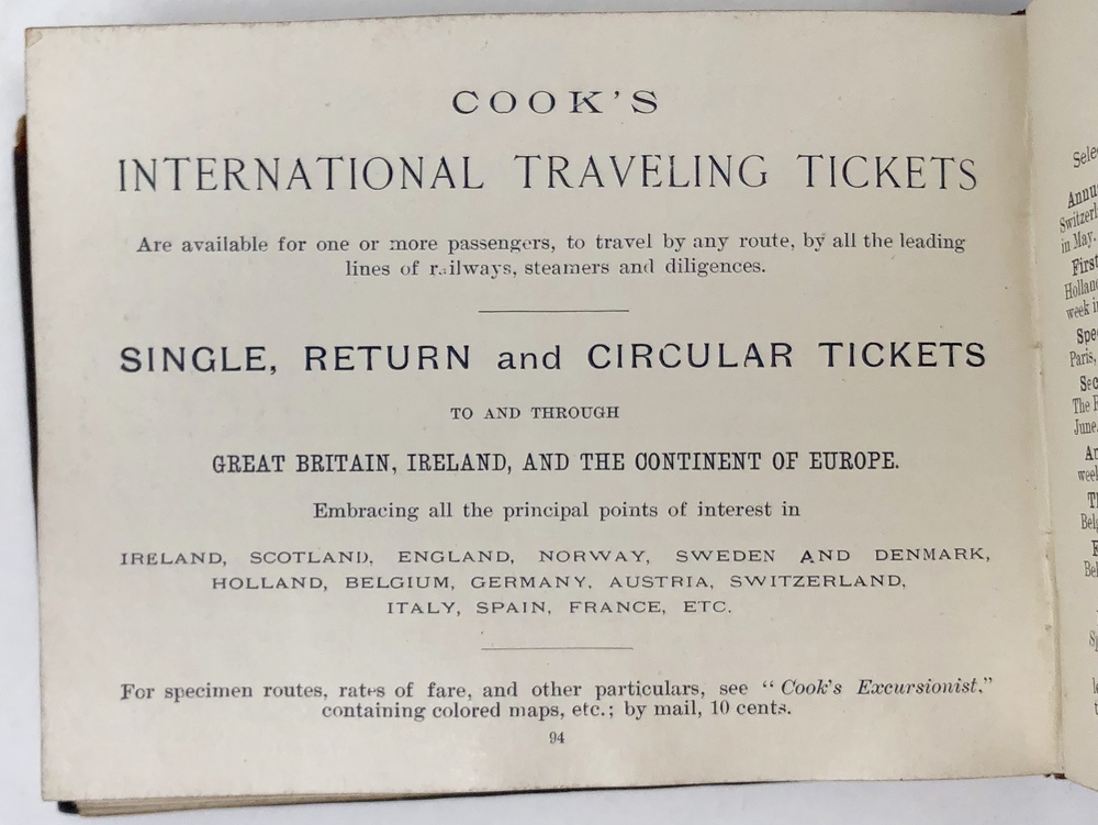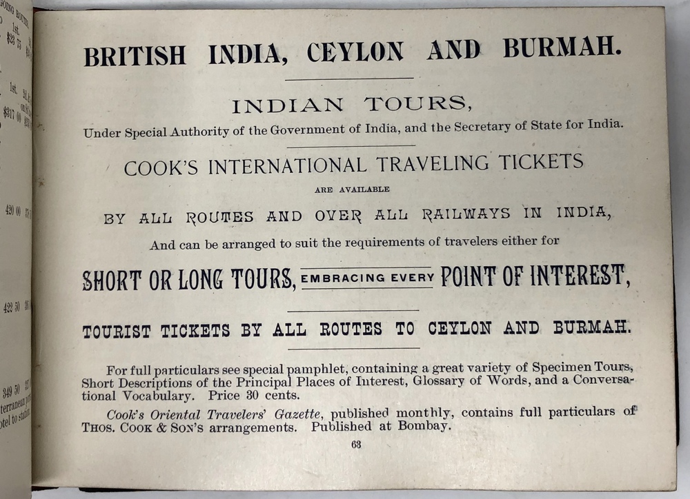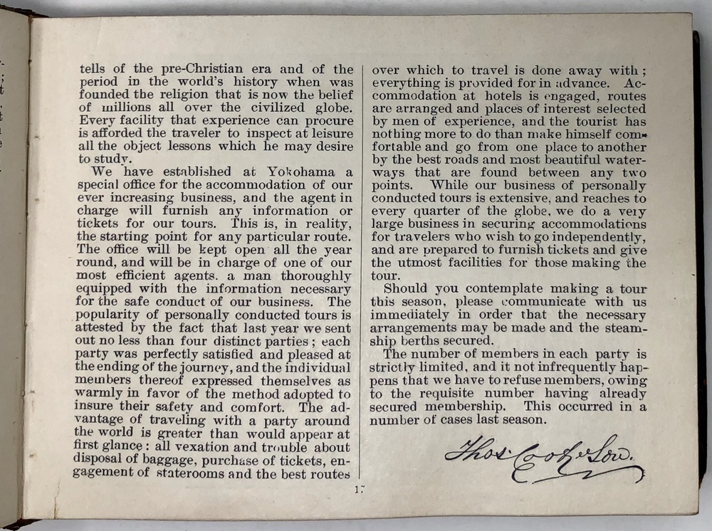 TWENTIETH SEASON. COOK'S TOURS ROUND THE WORLD. Programme and Itineraries of Five Select Tours, under Personal Escort, TO LEAVE SAN FRANCISCO, SEPTEMBER 15TH, 26TH, AND OCTOBER 8TH, AND VANCOUVER, AUGUST 29TH, VISITING JAPAN, CHINA, MALAY PENISULA, INDIA,
