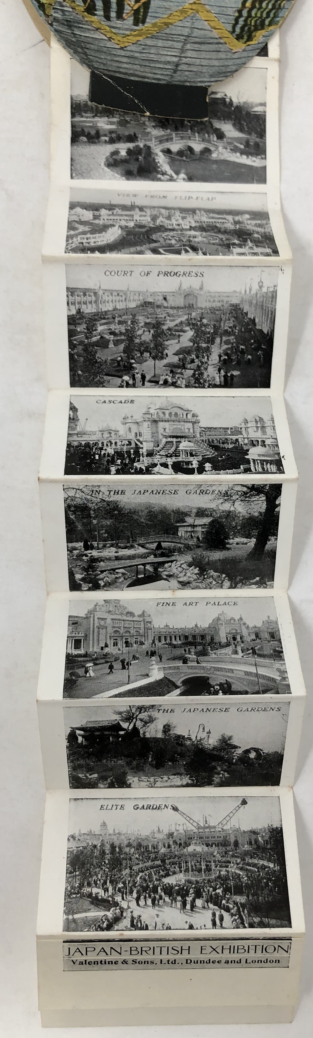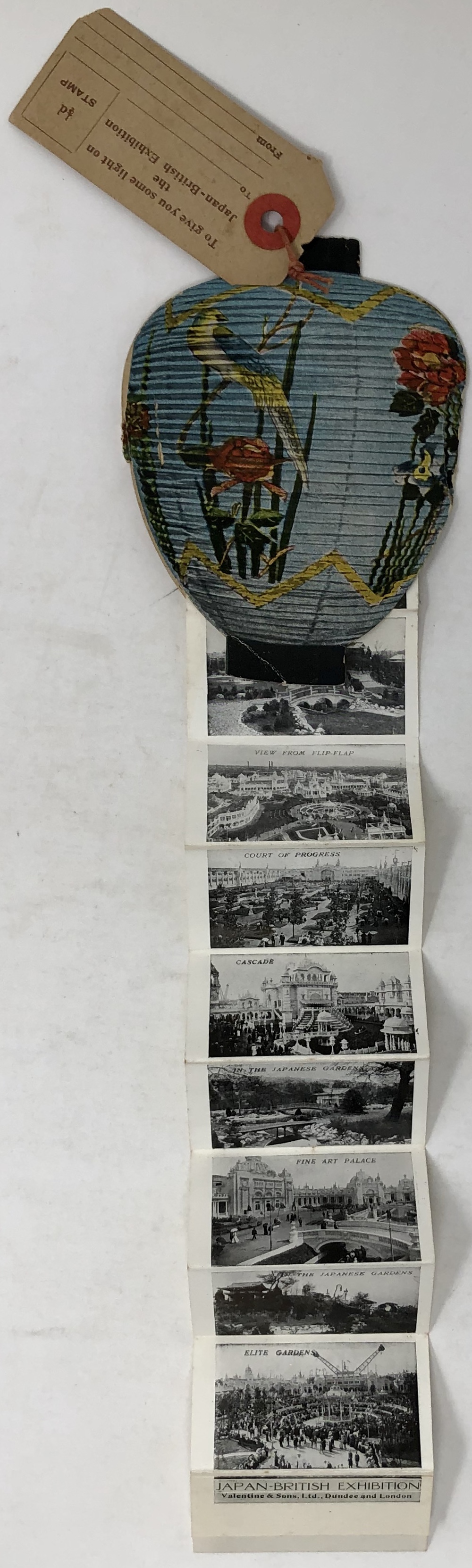 見返しに第6代ポートランド公爵の蔵書票あり。Birdsall and Sonによる特別装丁。付属品として、日本の提灯を模した折り込み写真帖の土産品あり。