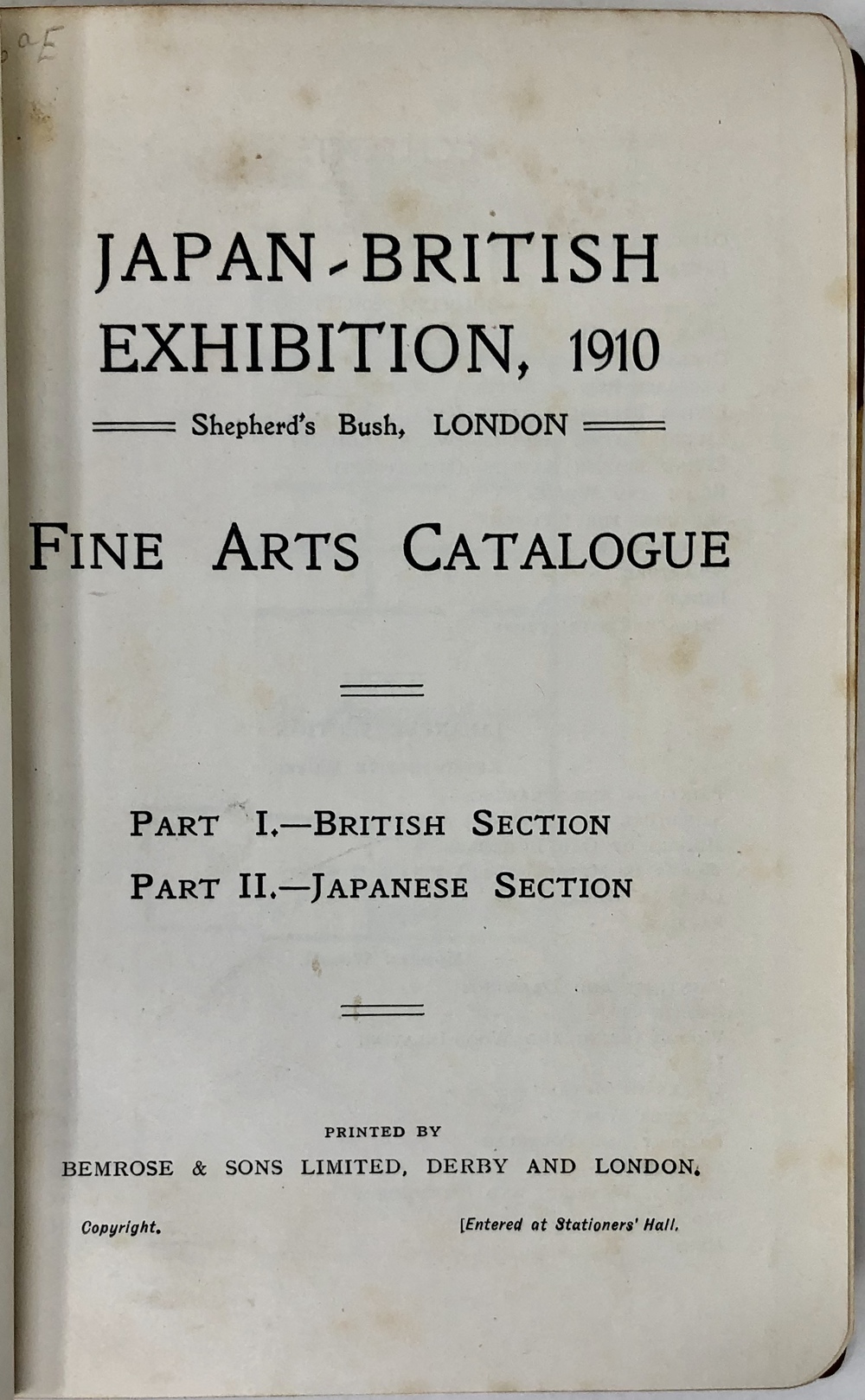 JAPAN-BRITISH EXHIBITION, 1910. Shepherd’s Bush, LONDON: FINE ARTS CATALOGUE. PART I.-BRITISH SECTION, PART II.-JAPANESE SECTION.