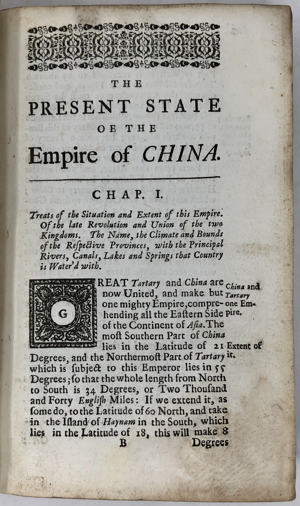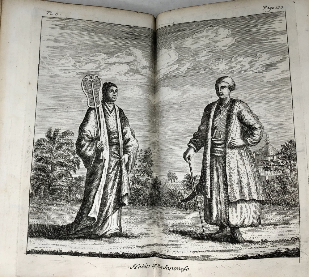 Cordier: 428(但し記載情報に誤りあり) 第1巻の1葉(z2, pp.171,172該当)ならびにトンキン地図に破れあり(テキストや図面の欠落なし)。第1巻の1葉(Uu4, pp.335,336該当)にシミ(テキスト読解に支障なし)。第1巻の1葉(Mmm4, pp.455,456該当)余白に破れと補修跡あり。第2巻バタヴィア地図とムガール帝国図に破れあり(テキストや図面の欠落なし)、第2巻1葉(Nn3, pp.277. 278該当)余白に破れあり。