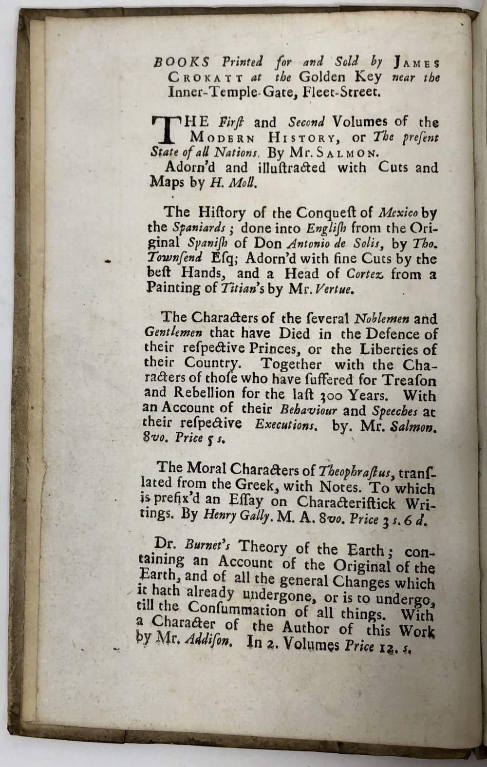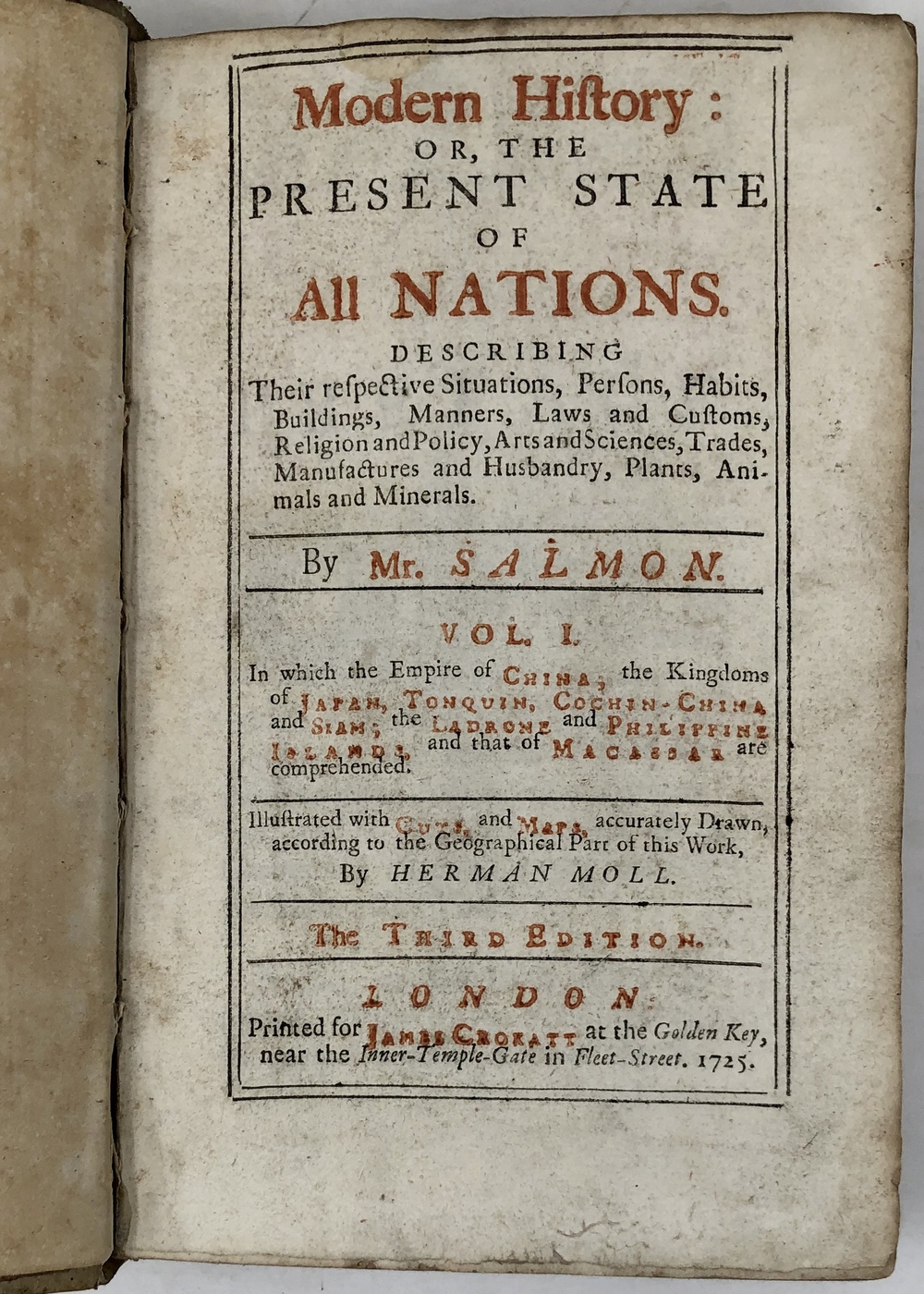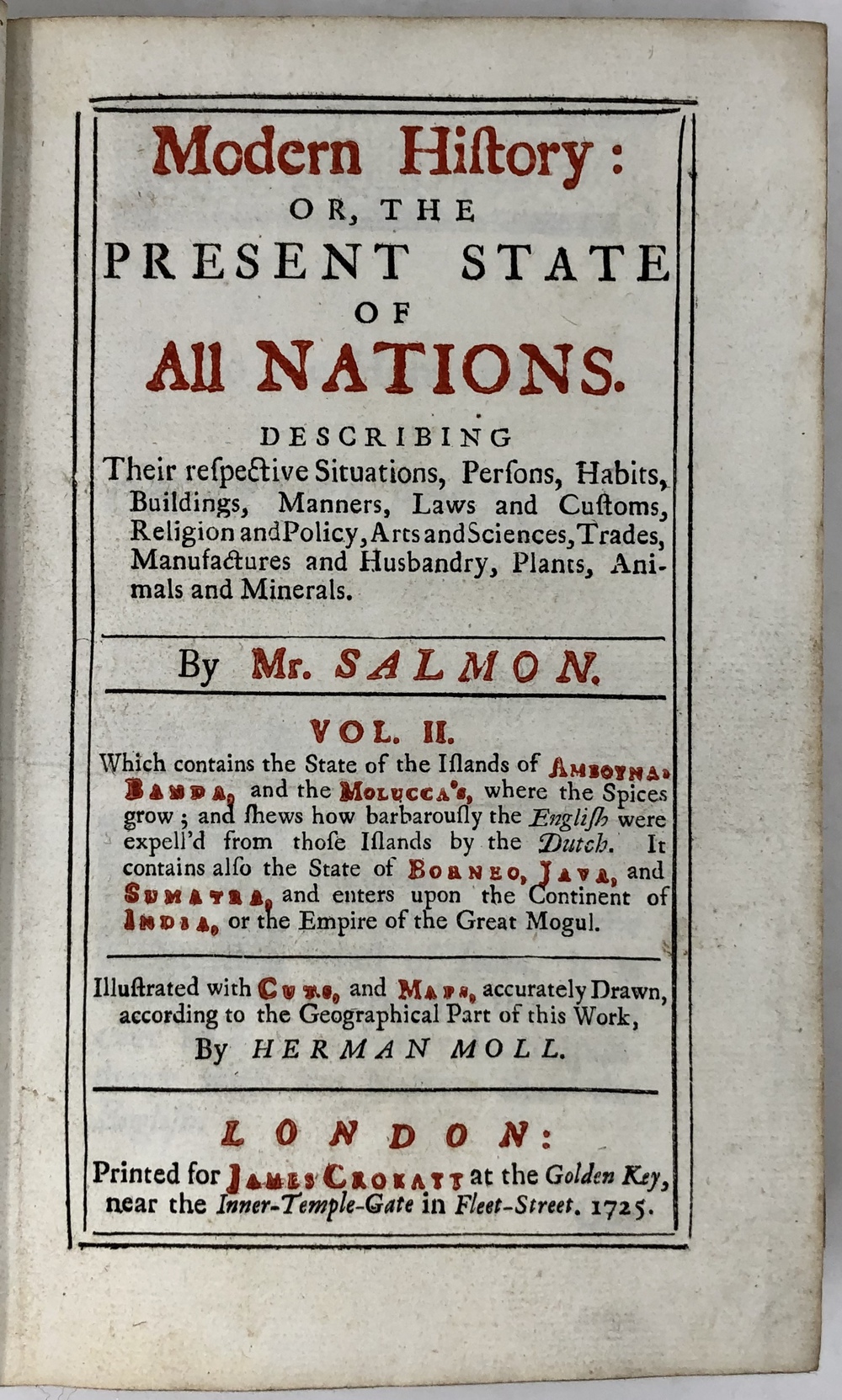 Modern History: OR, THE PRESENT STATE OF ALL NATIONS. DESCRIBING Their respective Situations, Persons, Habits, Buildings, Manners, Laws and Customs, Religion and Policy, Arts and Sciences, Trades, Manufactures and Husbandry, Plants, Animals and Minerals.