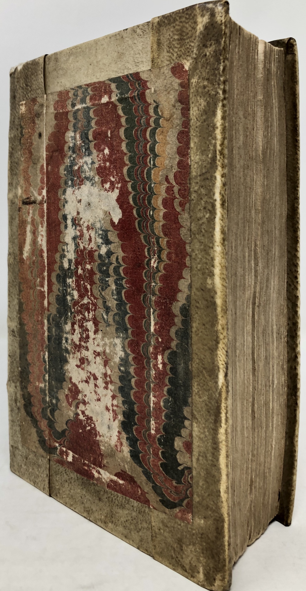 5 leaves (THE TABLE), Folded maps: [3], (some double pages / folded) Plates: [9]. Uniform contemporary vellum, roughly repaired by using marble papers.