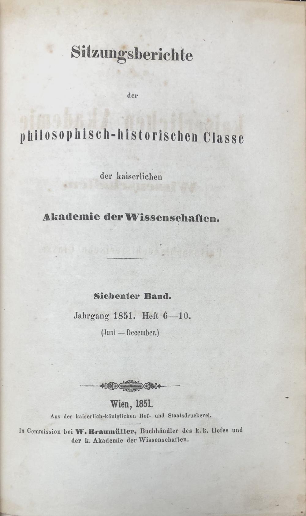 Über den Bau der Aino-Sprache. IN Sitzungsberichte der kaiserlichen Akademie der Wissenschaften. Philosophisch - historische Classe. Siebenter Band. Jahrgang 1851. Heft 6-10. (Juni-December.)