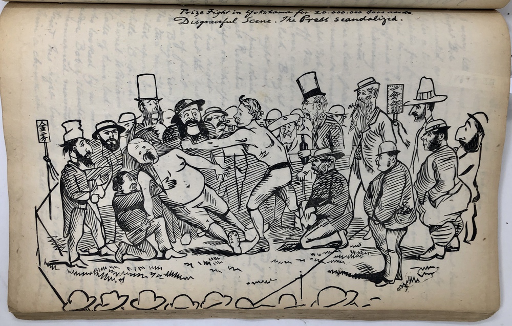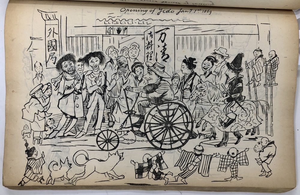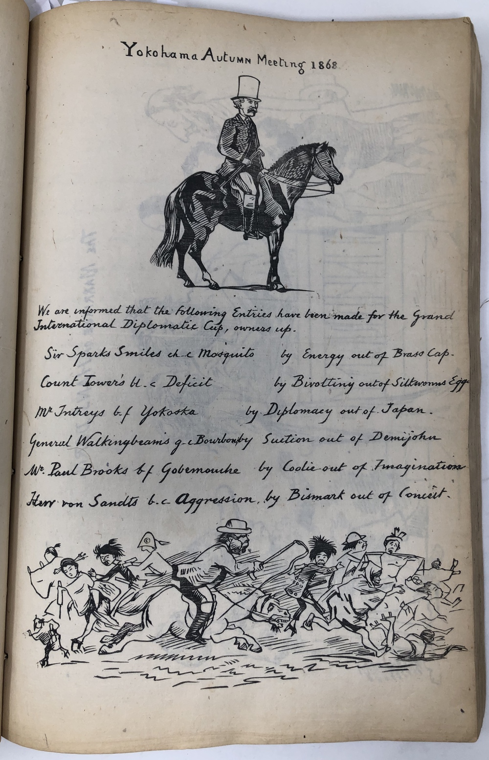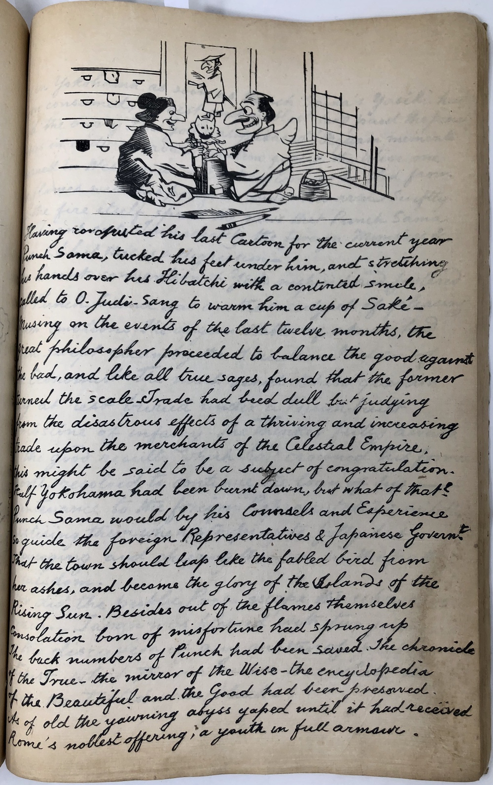 本書は、このように書誌情報の特定が非常に困難で、また現存数が後年の号よりも少ないことで知られる貴重なジャパン・パンチの初期の号を比較的纏った形で、しかも当時の所有者による合冊の形を保っているという点で、非常に価値のある文献ということができます。もちろん、幕末から明治初期にかけて大きな転換期を迎えることになった日本社会を横浜外国人居留地の人々の目線から描いた貴重な史料として、その内容がかけがえのない価値を有していることは言うまでもありません。