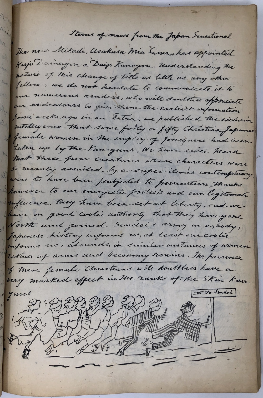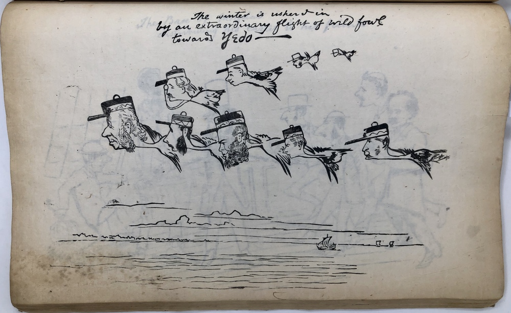 「1862(文久2)年7月、ワーグマンによって横浜居留地で創刊された『ジャパン・パンチ The Japan Punch』は、同じ月にEXTRA版が出されるが、それ以後3年間中断してしまう。本業の『イラストレイテッド・ロンドン・ニューズ』の仕事に多忙だったためだろう。1867年以降は毎月刊行となり明治20年3月まで続いた。