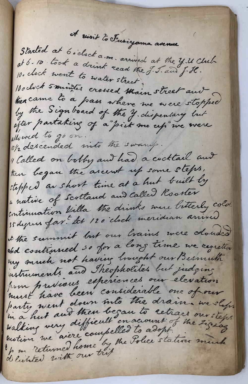 「勤務時間の短い社会であった。会社や銀行や商店はたいてい9時半か10時に始り、4時半にはしまっていた。夕方になるとトラップと呼ばれる香港製の2輪馬車でごった返し、その車内にはブラフへの家路を急ぐマイホーム亭主や、グランドホテルのバーで友人たちと合流する男たちや、ビリヤードをするか飲むためにユナイテッド・クラブへ向かう若い男たちが乗っていた。週末には、入り江でヨットが帆走し、根岸競馬場ではレースが行われ、ゲーテ座(のちのぷブリック・ホール)では芝居や歌があり、クリケットのグラウンドではクリケット・ゲームがあった。さらに、テーラーや靴職人や散髪屋を訪れるという日常的な行動もあった。横浜の外国人は、望めば静かな生活を送ることもできたが、もっと正気のある生活の方がより一般的であった。(宣教師たちの必死の説教にも拘らずである。)