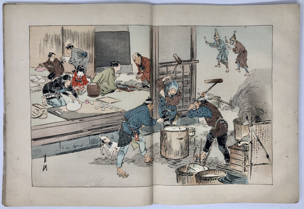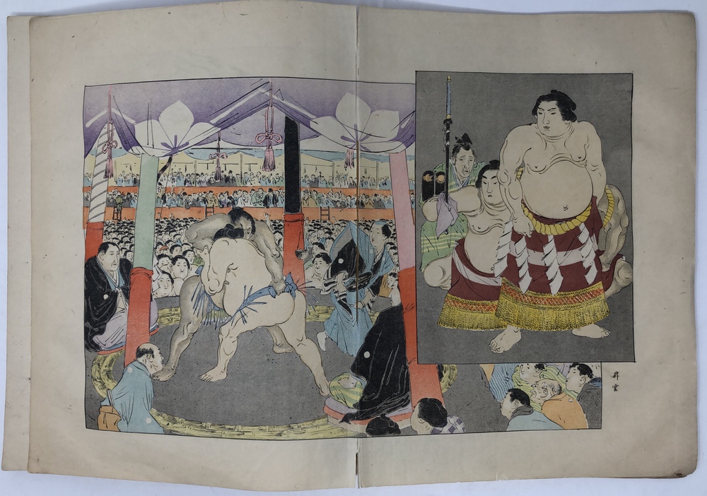 Title.(verso of the front cover), colophon, 1 double pages illustration(hereinafter called d.p.i), pp.[1], 2, 1 d.p.i., pp. 3, 4, 1 d.p.i., pp.5, 6, 1 d.p.i., pp.7, 8, 3 d.p.i.s, pp.9, 10, 2 d.p.i.s, pp.11, 12, 1 d.p.i., pp.13,14, 2 d.p.i.s, pp.15, 16, 1,