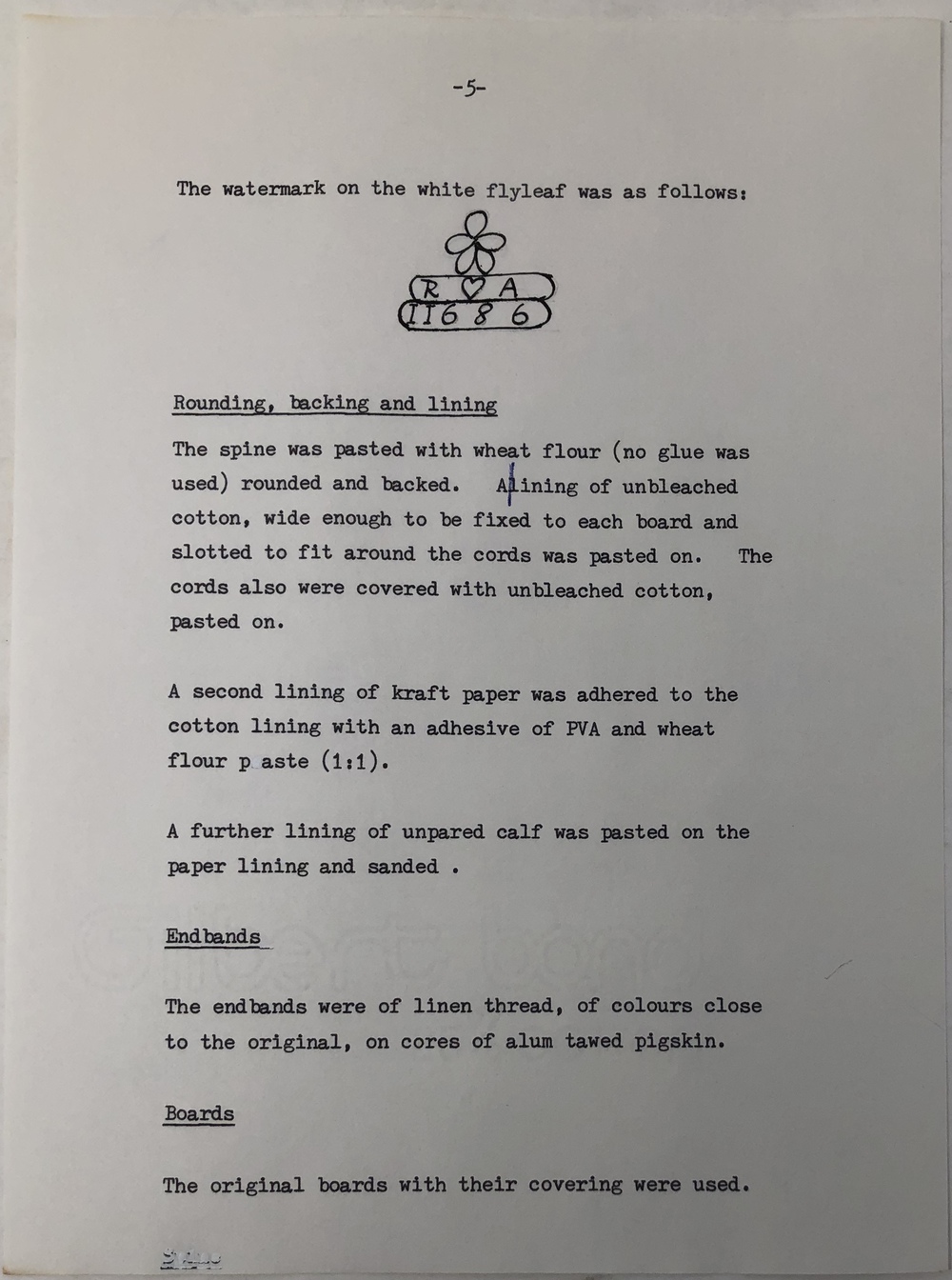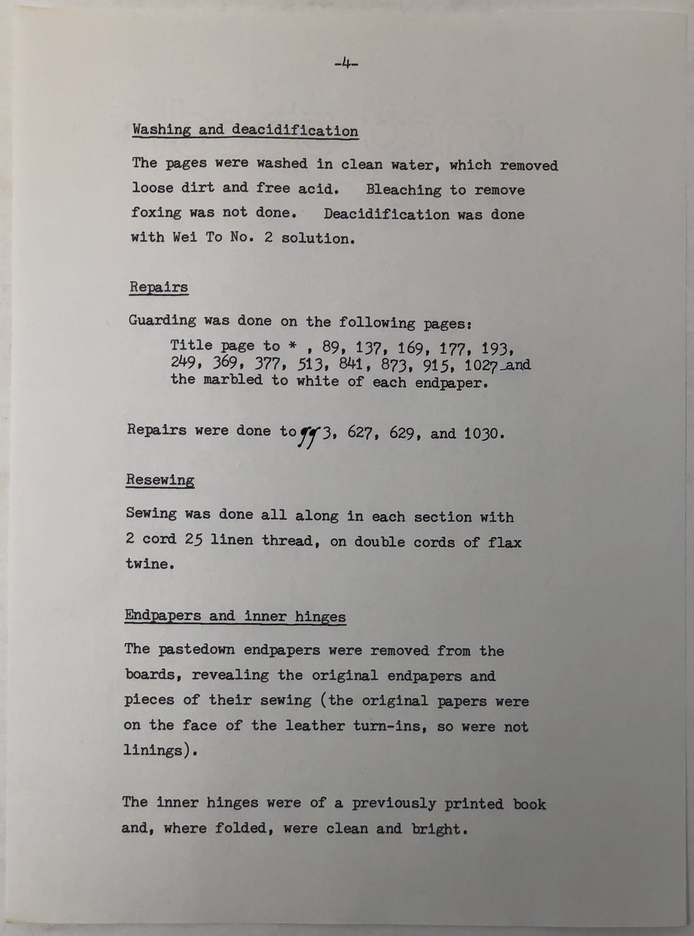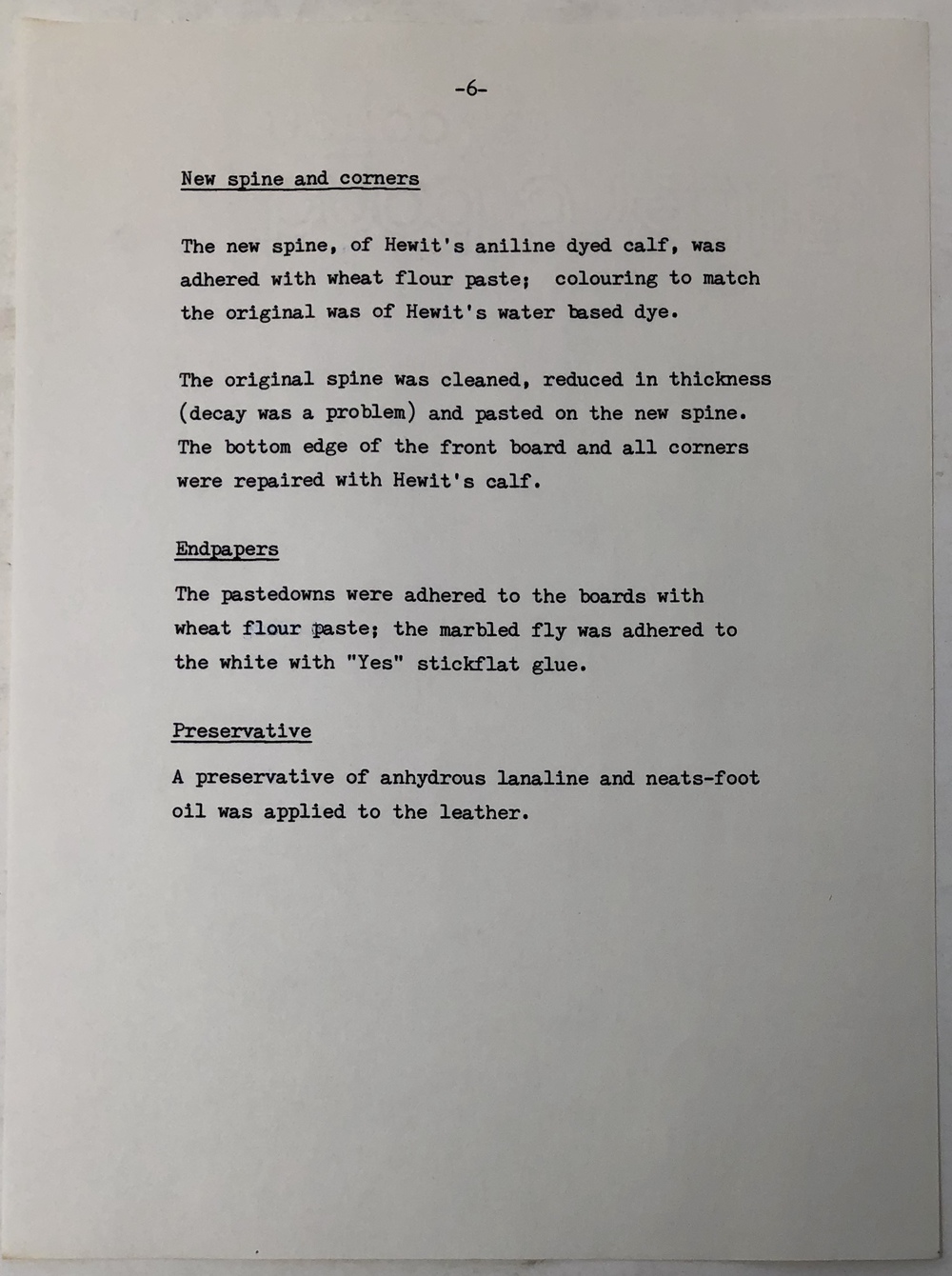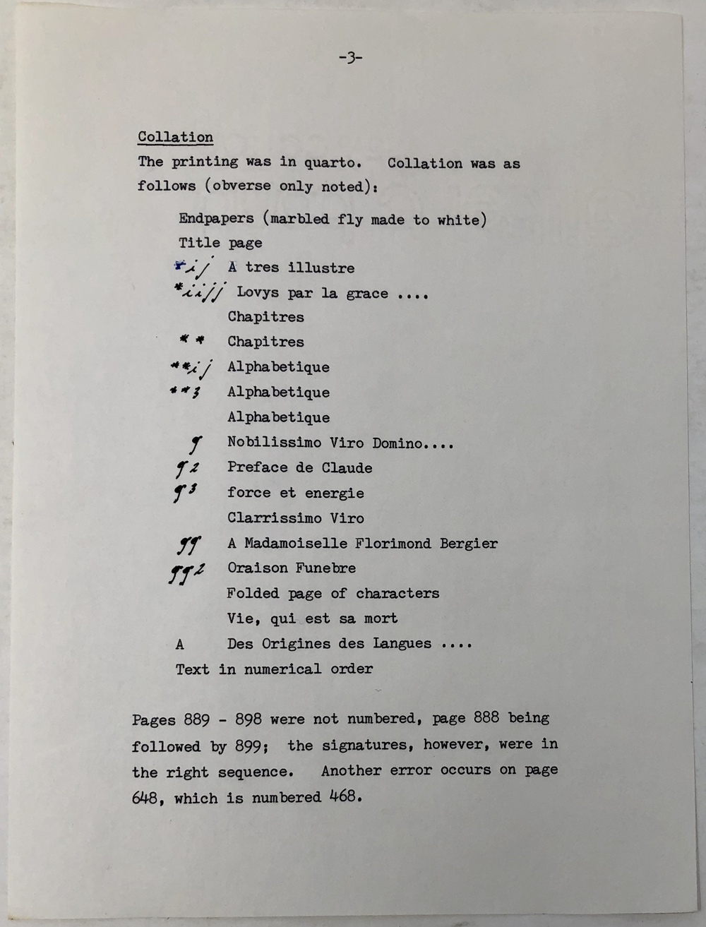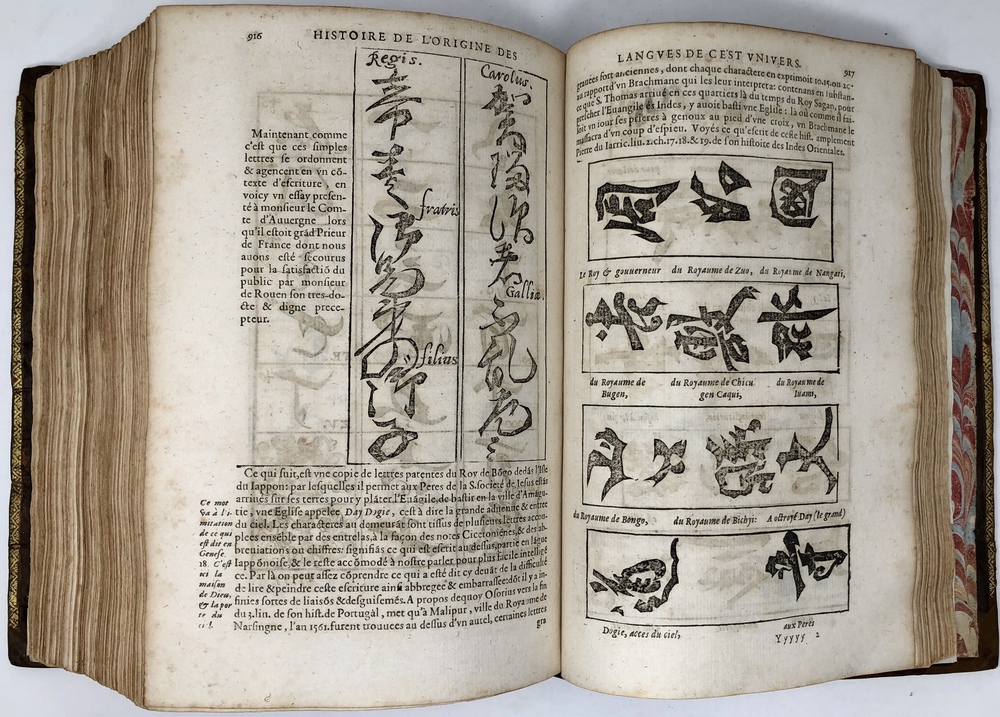 それ以前は2冊本であったものを1790年に1冊に綴じ直されており、表紙に金箔押しが施されている。現在の装丁はそれをさらに近年再修復したもので、その際の修理記録と以前の装丁に用いられていた花切れなどが付属。修理記録と書籍本体を納められる専用のスリップケースが付属。(Cordier: 274-275 / NCID: BA62618695(2nd ed.))