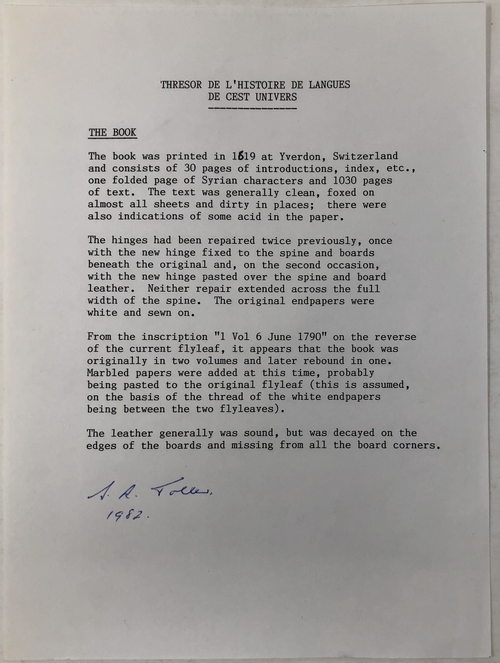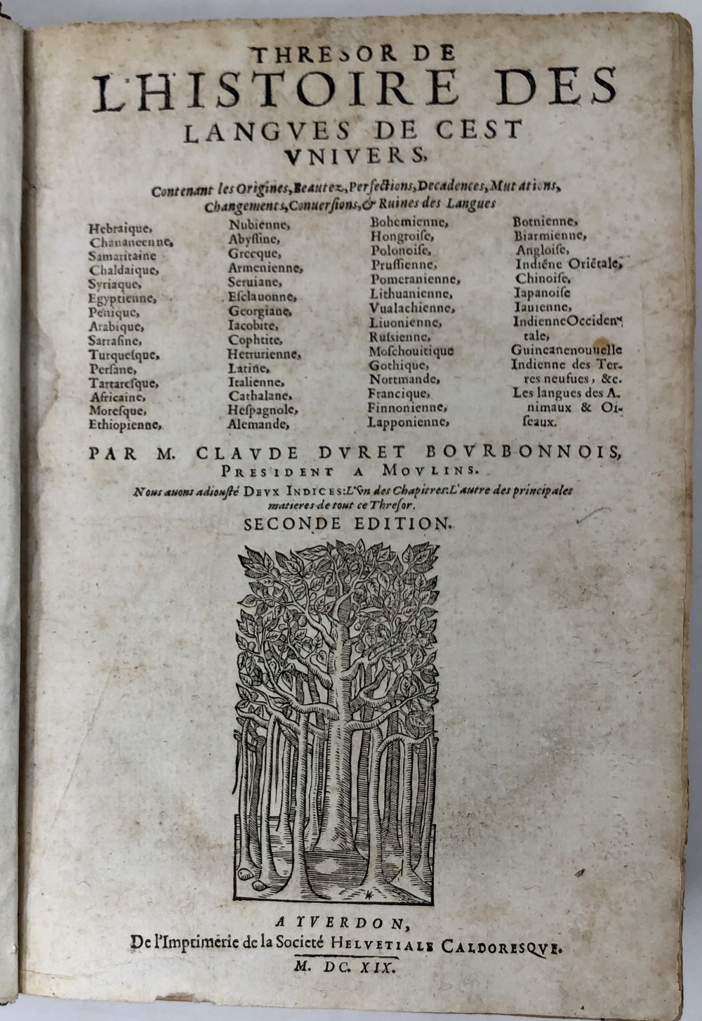 THRESOR DE L’HISTOIRE DES LANGVES DE CEST VNIVERS, contenant les Origines, Beautez, perfections, Decadences, Mutations, Changements, Conversions, & Ruines des Langues…(Thresor de l'histoire des langues de cest univers)