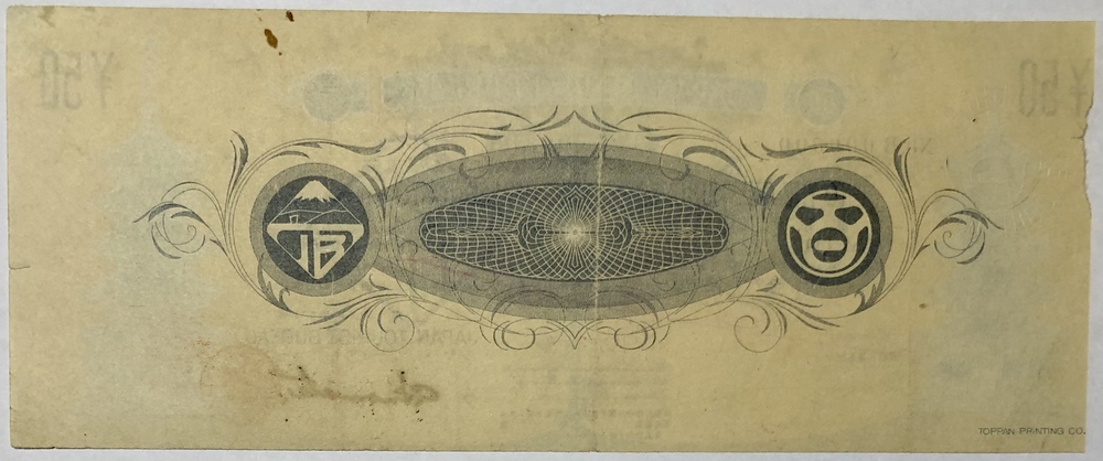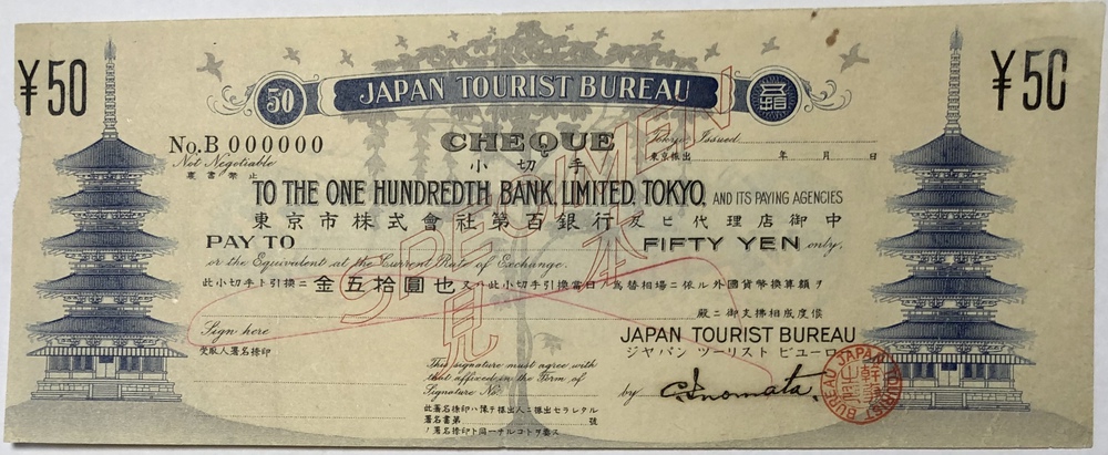 Two specimens of ¥50 Cheque and ¥100 Cheque.
