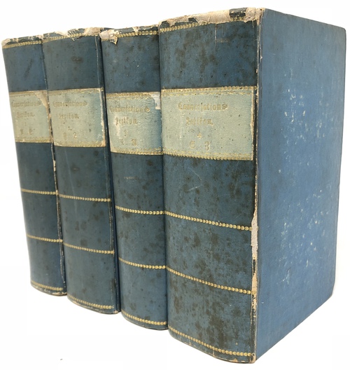 4 vols. Erster Band (A bis E); Fly title, Title, pp.[1], 2-876, Zweiter Band (F bis L); Fly title, Title, pp.[1], 2-987, Dritter Band (M bis R); Fly title, Title, pp.[1], 2-882, Vierter Band (S bis Z); pp. [I-V], VI-VIII, [1], 2-1276, 2 leaves,