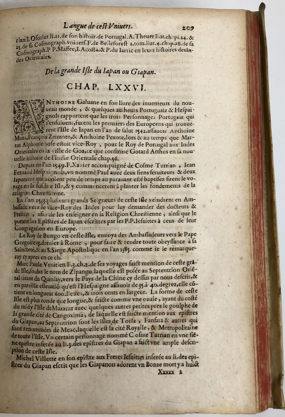 また、これらの王室関係者以外の異なる日本文の情報源として、王室との関係が深かったイエズス会関係者の存在が大きかったことも確認できます。まず、大きな手がかりとなるのが、その名前が漢字で「恵問津阿宇是類」で書かれているエドモンド・オジェ(Emond Auger, 1530 - 1591)で、彼はアンリ3世付きの懺悔師でという王室と極めて深い関係があり、漢字でその名が記されていることに鑑みると、エドモンド・オジェは、フランス王室関係者が使節と会談した際に立ち会っていた可能性が極めて高いと考えて良いでしょう。また、彼は、マッフェイ(Giovanni Pietro Maffei, 1536 - 1603)の『東洋におけるイエズス会に関する諸事項の歴史』第3版(Rerum, a Societate iesu in Oriente…1571)のフランス語訳(Histoire des choses memorables…1571)の訳者でもありました。彼がフランス語に翻訳した、マッフェイの『東洋におけるイエズス会に関する諸事項の歴史』は、マヌエル・デ・アコスタ(manuel da Costa, 1541 - 1604)が日本を含むインド方面からの書簡集をまとめていた未刊原稿をラテン語に翻訳して、自身の解説を付け加えた著作として刊行されたものですが、その第3版(初版と少しタイトルが異なる。Historia Rerum a Societate Iesu in Oriente Gestarum…1573)において、「大道寺免許状」を初めて紹介した書物としても名高い書物です。この書状をヴィジェーヌも「補遺」に掲載していることに鑑みると、ヴィジェーヌは、フランスのイエズス会関係者の重鎮であるエドモンド・オジェとの関係を駆使して、フランス王室文書庫の日本文書だけでなく、イエズス会が所蔵する様々な日本情報にもアクセスできたであろうことが推察されます。ヴィジェーヌは、エドモンド・オジェ以外にも、補遺のCCCXXXVvで複数のイエズス会関係者の名前を挙げているようですので、彼とイエズス会とのコネクションは相当に強固なものであったとみて良いでしょう。