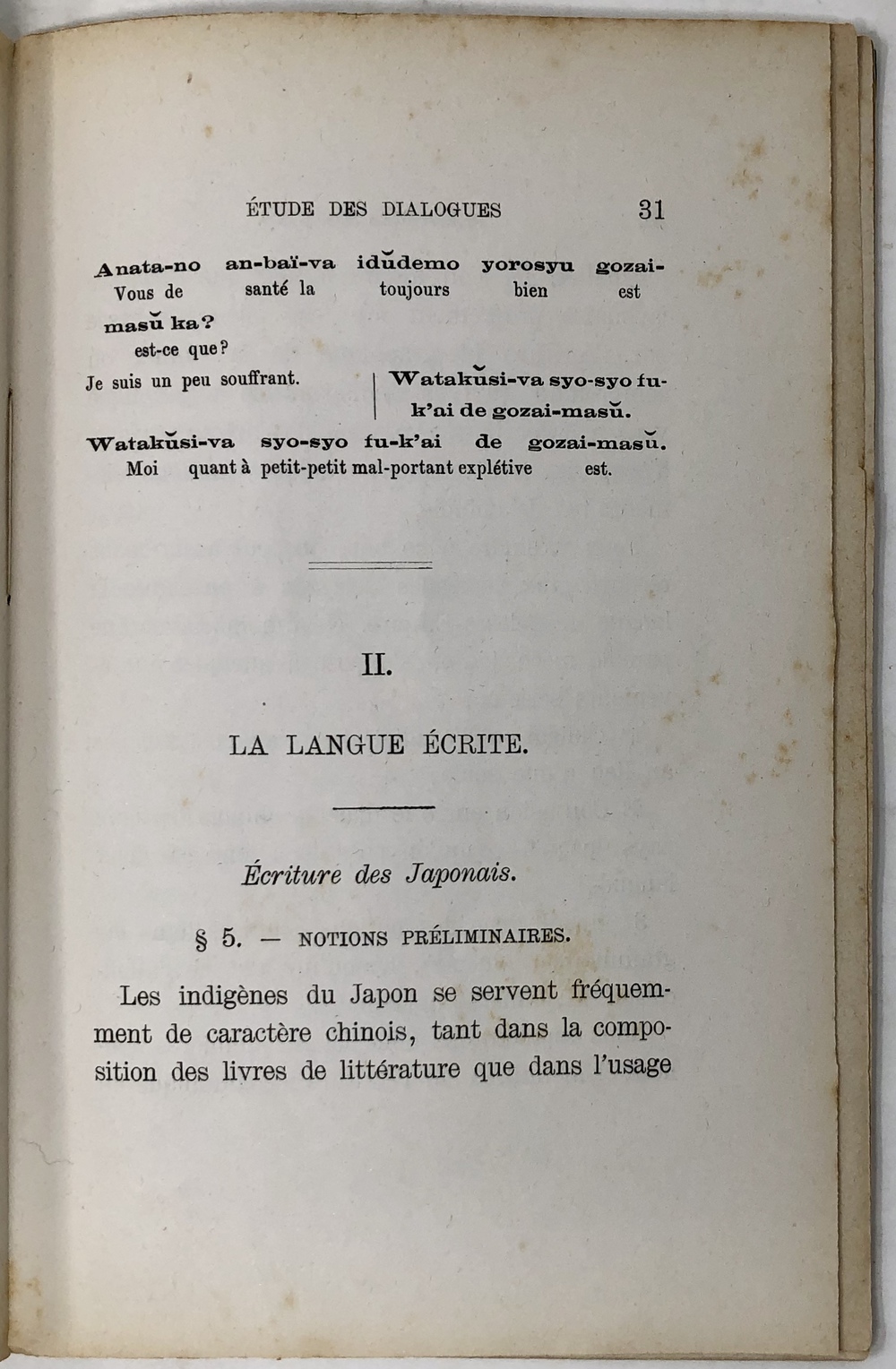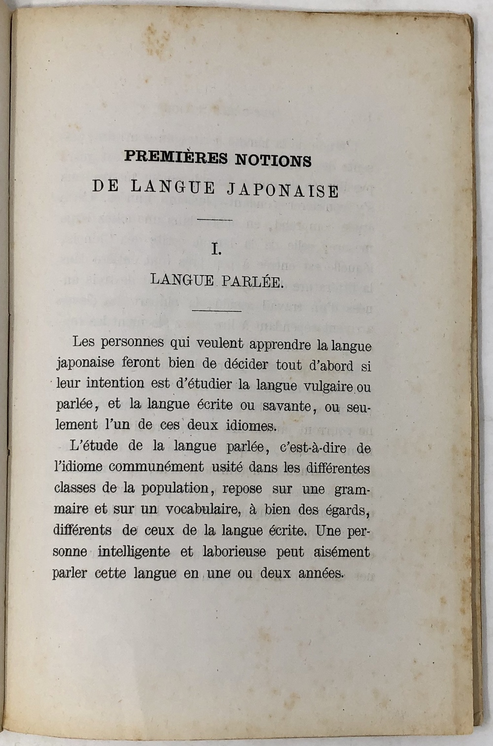 PREMIÈRES NOTIONS DE LANGUE JAPONAISE PARLÉE ET ÉCRITE.(INTRODUCTION AU COURS DE JAPONAIS)