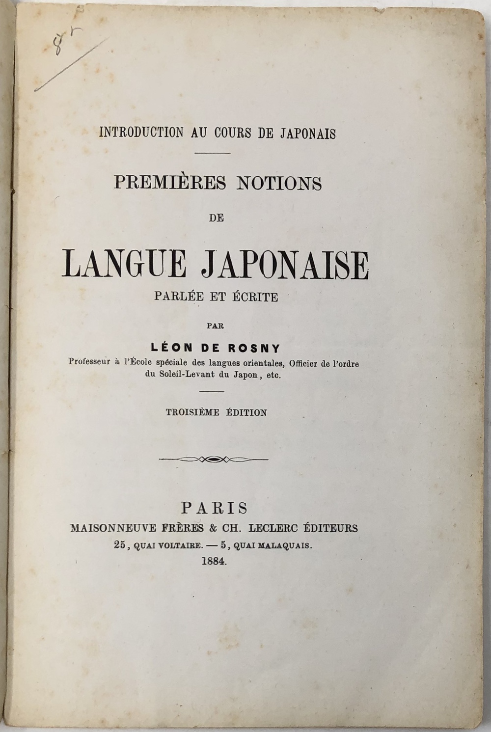 (日本語コース第1学年(初級)第1部)第3版 1884年 パリ刊