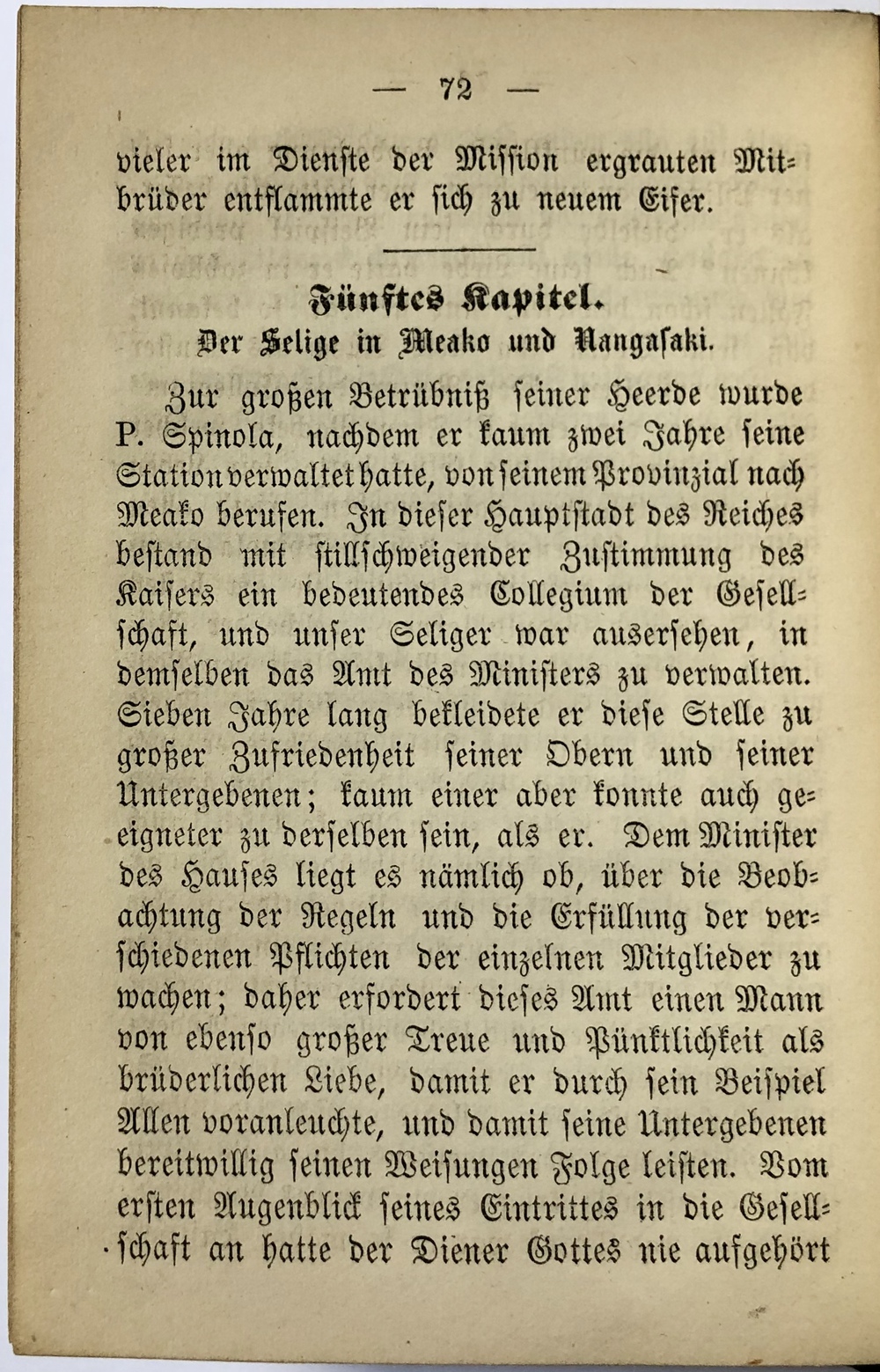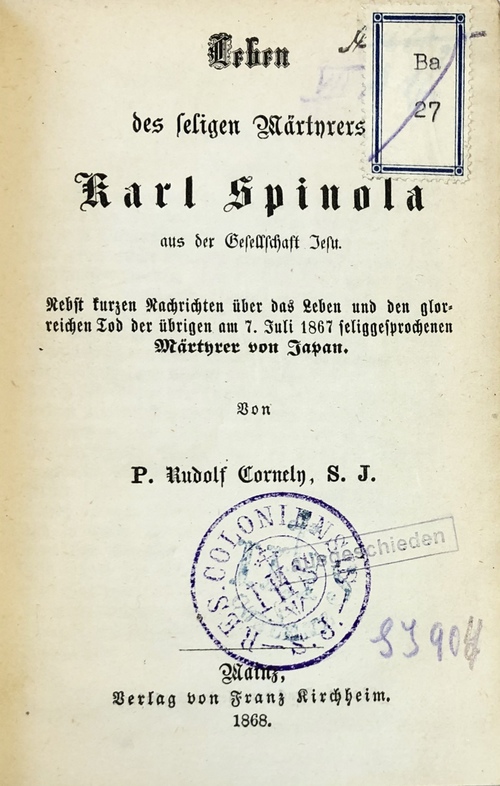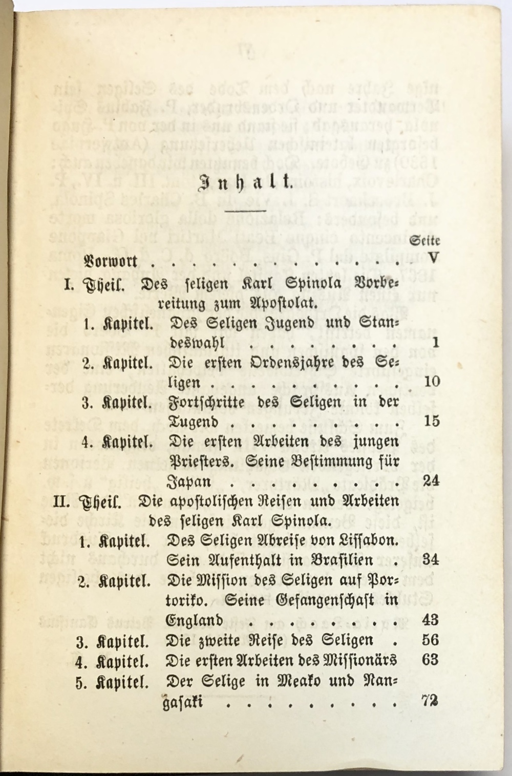 Leben des seligen Märtyrers Karl Spinola aus der Gesellschaft Jesu. Nebst kurzen Nachrichten über das Leben und den glorreichen Tod der übrigen am 7. Juli 1867 seliggesprochenen Märtyrer von Japan.