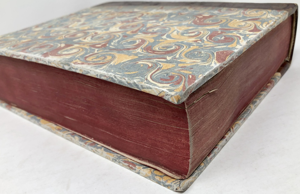 タイトルページのみ後年のファクシミリか? Sf(s)-1の下部余白に破れ(テキスト欠落なし)あり。小口は三方とも赤く染められている。