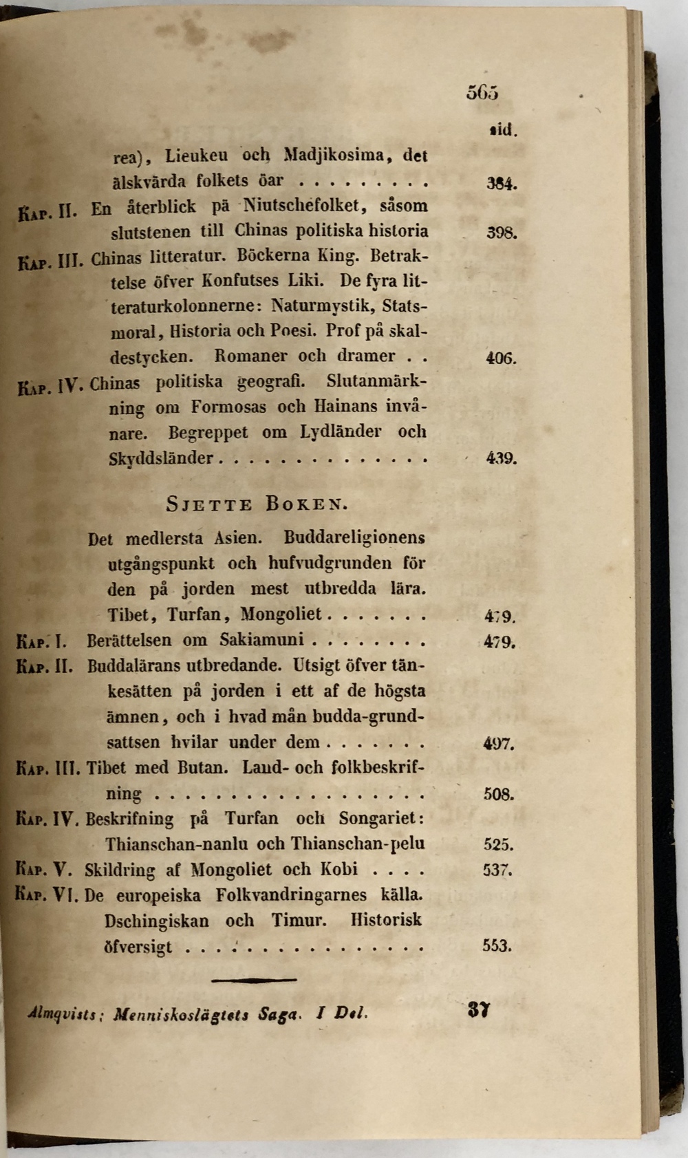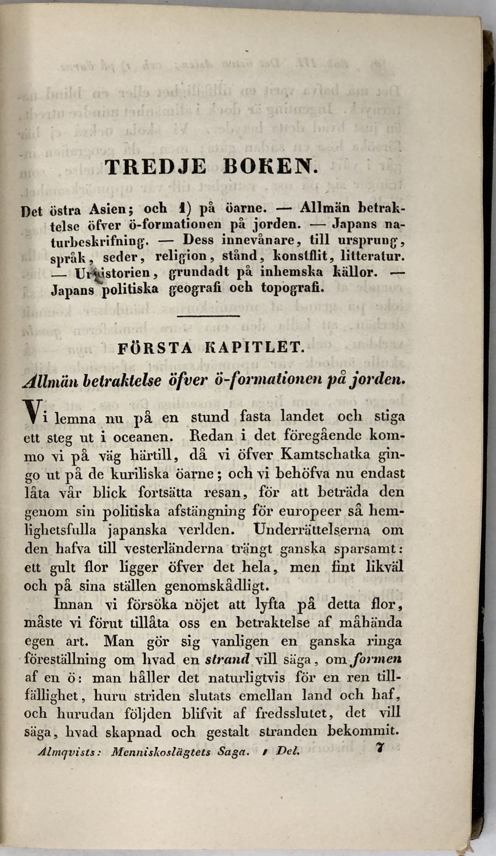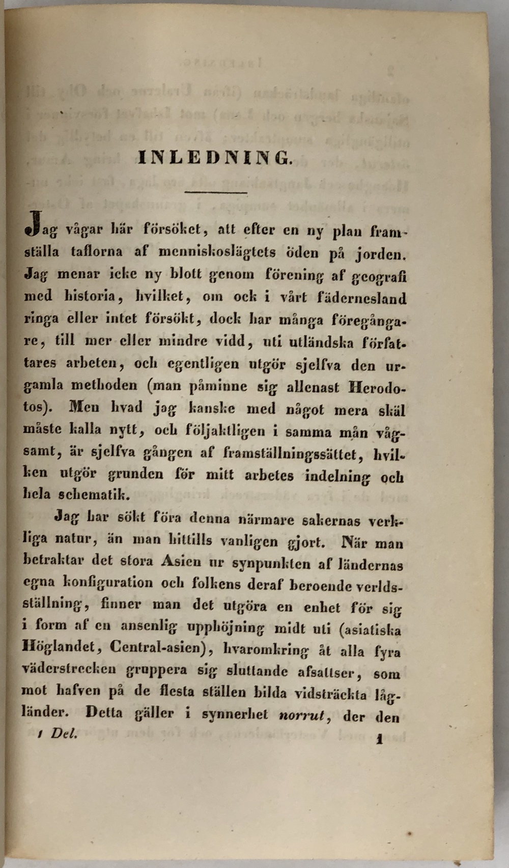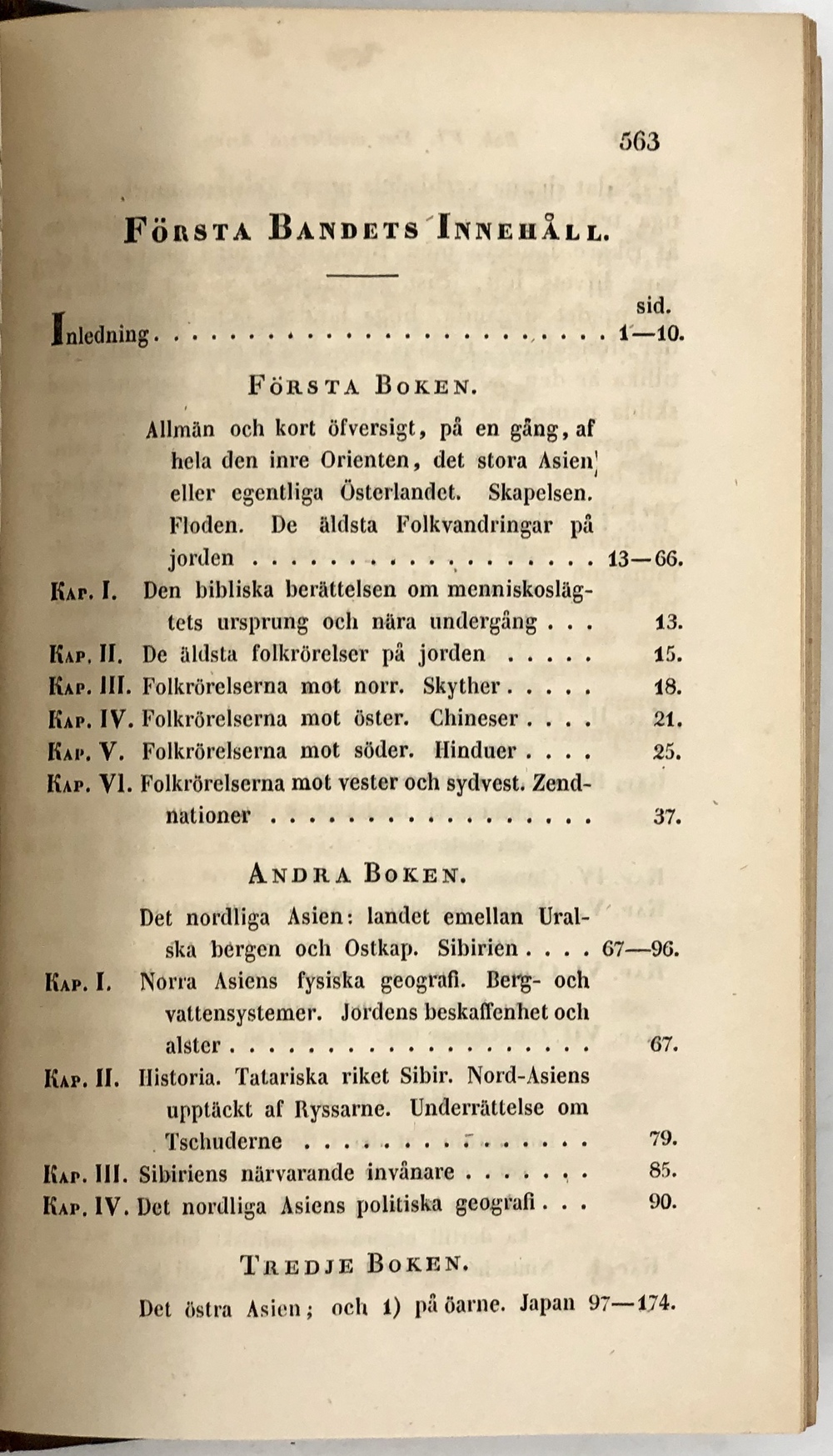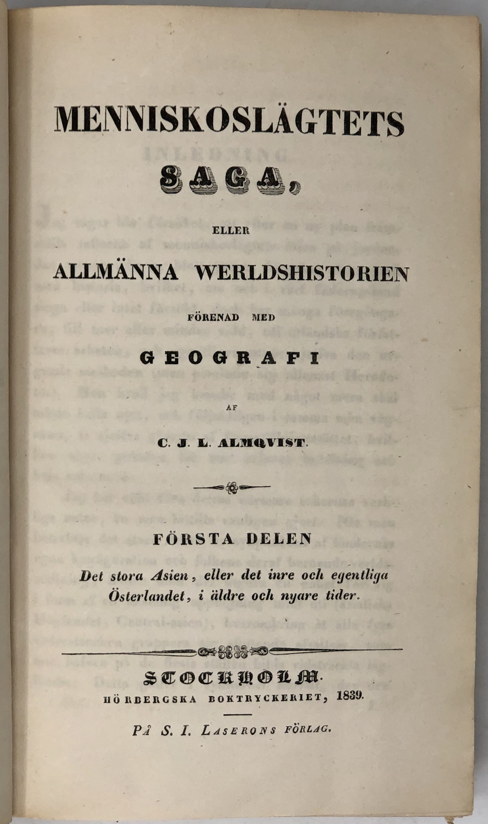 MENNISKOSLÄGTETS SAGA, ELLER ALLMÄNNA WERLDSHISTORIEN FÖRENAD MED GEOGRAFI. FÖRSTA DELEN: Det stora Asien, eller det inre och egentliga Österlandet, i äldre och nyare tider.