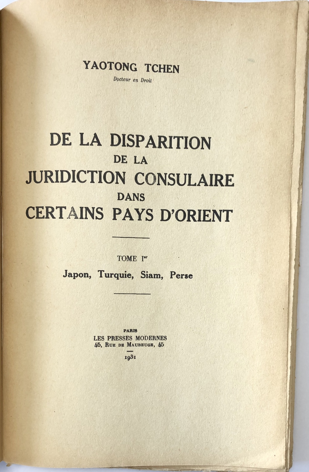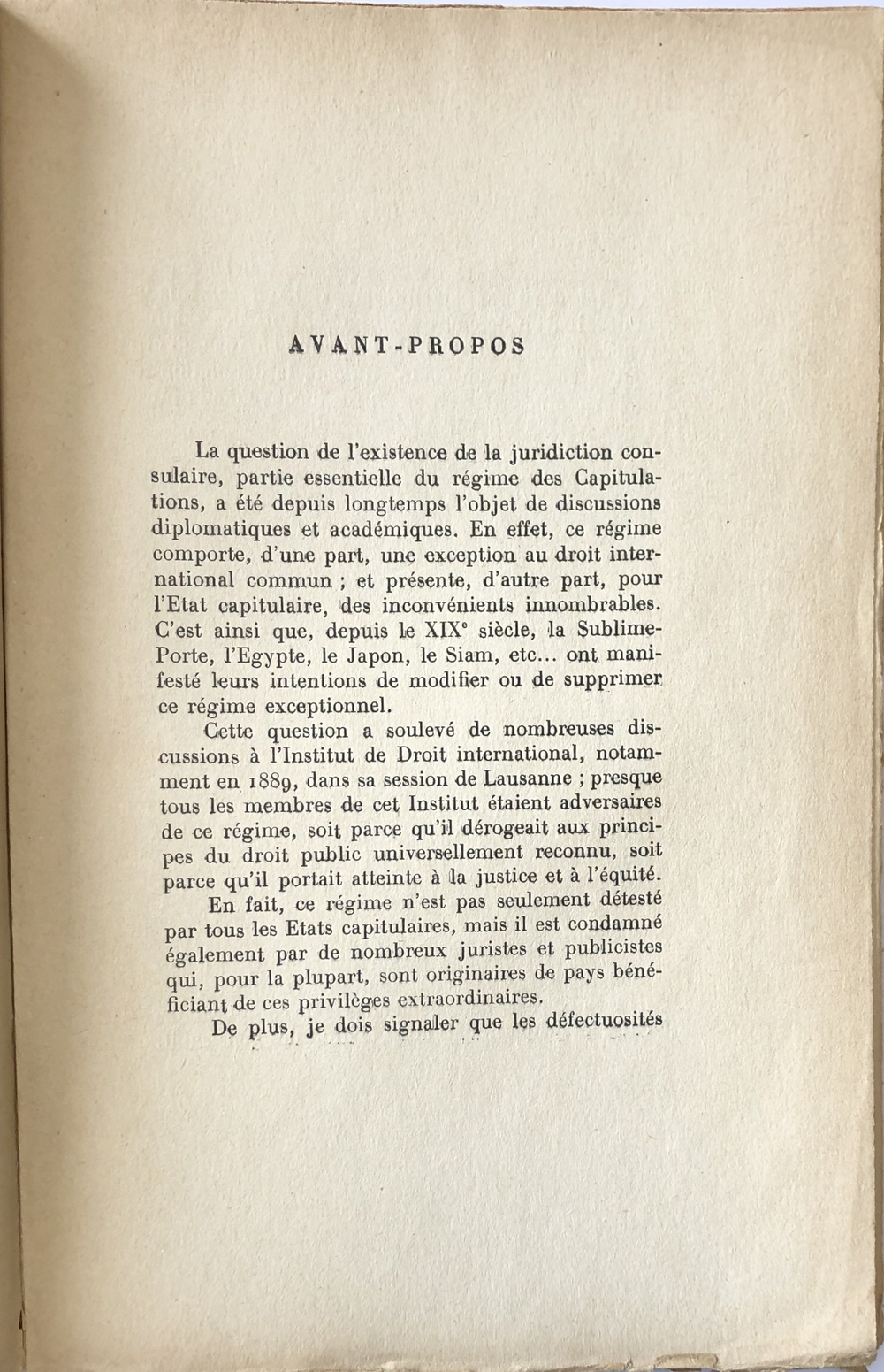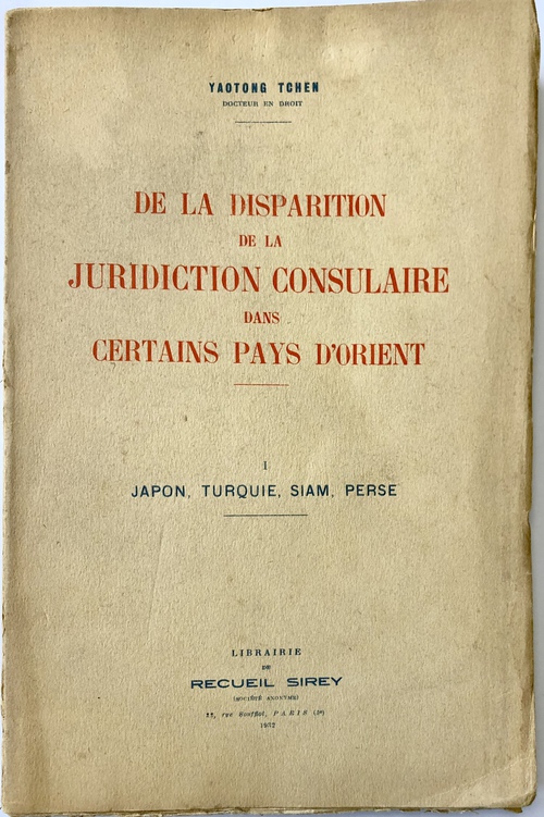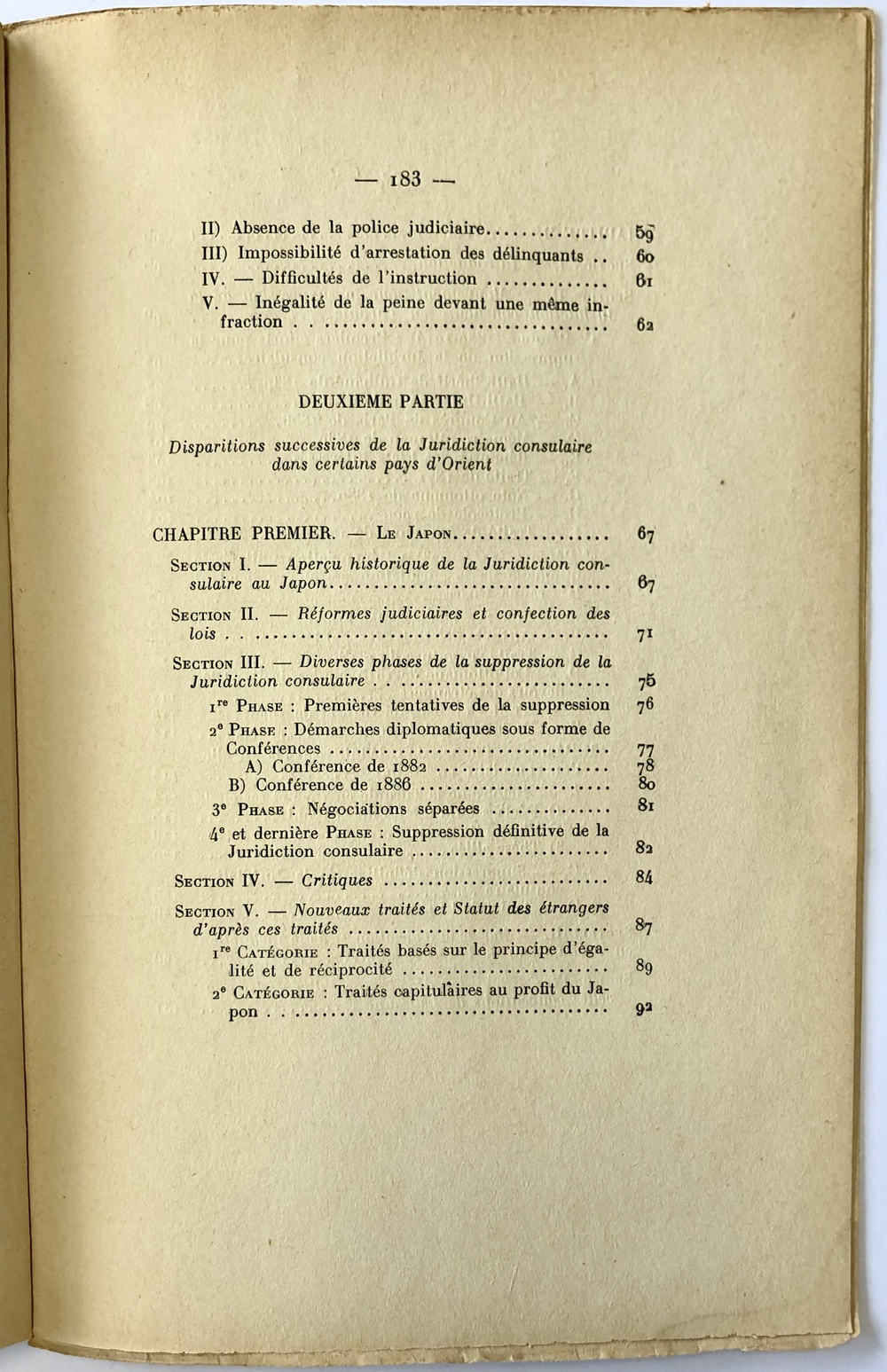 DE LA DISPARITION DE LA JURIDICTION CONSULAIRE DANS CERTAINS PAYS D’ORIENT: I JAPON, TURQUIE, SIAM, PERSE.